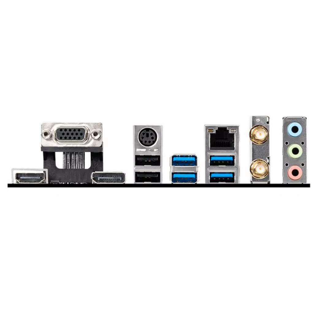 | Наружные порты | 1 x DisplayPort, 1 x HDMI, 1 x PS/2, 1 x RJ45, 1 x VGA, 2 x USB 2.0, 3 x Audio, 4 x USB 3.2 Gen 1 Type-A, Wireless/Bluetooth |