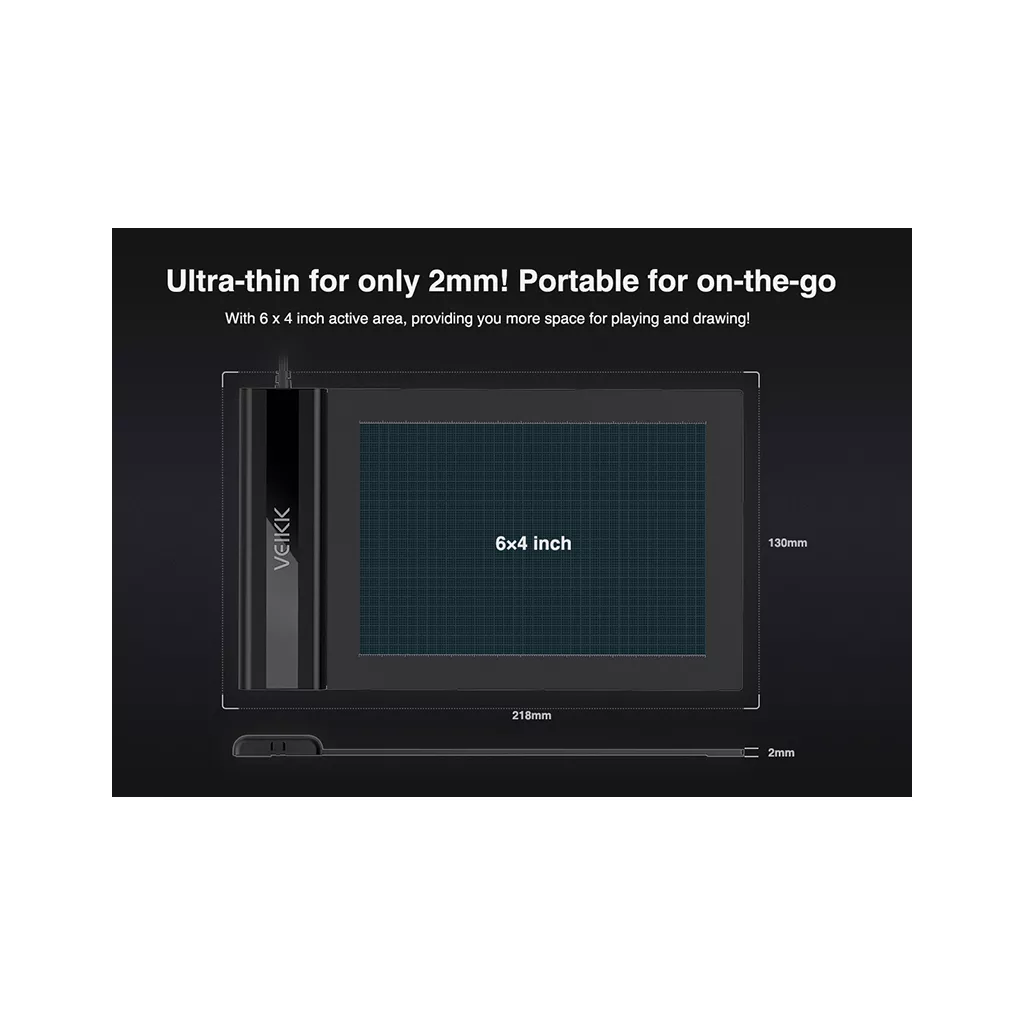 батареек с 8192 уровнями чувствительности к давлению. Перо с высокой чувствительностью и не требует заряда, обеспечивает бесперебойное использование. Большая область рисования 254х152.4 мм (10x6 дюймов) и компактная толщина 9 мм. Совместимость с Windows, Mac и Android 6.0 и поновее. Вы легко можете подключить свой телефон к планшету с помощью разъема OTG.