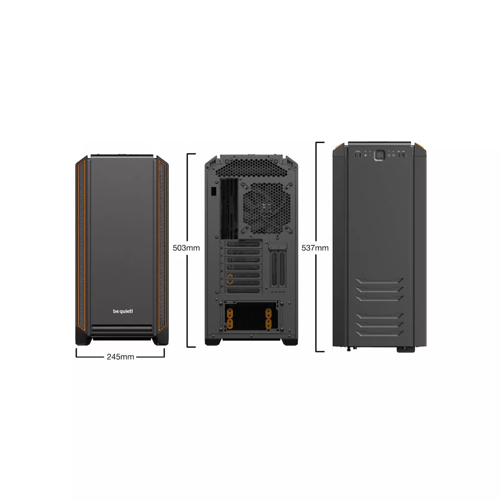 Несмотря на компактную конструкцию, Silent Base 601 обеспечивает огромный внутреннее пространство и монтажные отверстия для установки материнских плат формата E-ATX. Продуманная компоновка корпуса поддерживает установку нескольких видеокарт и систем охлаждения больших размеров. охлаждение. Радиаторы длиной до 360 мм могут быть размещены в передней, верхней или тыльной части корпуса. Использование съемного кронштейна позволяет быстро и легко установить радиатор в верхней части шасси. вид на компоненты системы внутри корпуса. Панель выполнена из закаленного тонированного стекла с затемнением по кромкам.