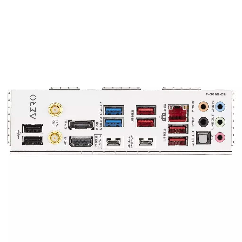 Внешние порты | 2 x USB 3.2 Gen 1, 1 x USB 3.2 Gen 2x2, 1 x USB 3.2 Gen1 Type-C, 4 x USB 3.2 Gen 2, 2 x SMA antenna connectors (2T2R), 1 x RJ45, 2 x USB 2.0, 1 x DisplayPort, 1 x optical SPDIF out, 5 x Audio |