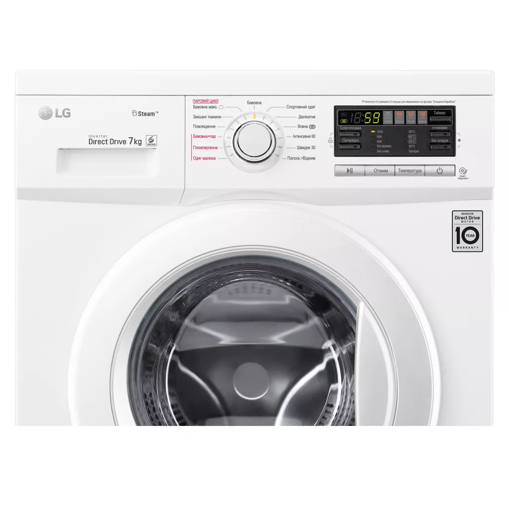 | Особенности | Smart Diagnosis, Spa Steam, Автоматический перезапуск, Система прямого привода Inverter Direct Drive, Технология 6 MOTION, Уменьшение уровня вибрации |