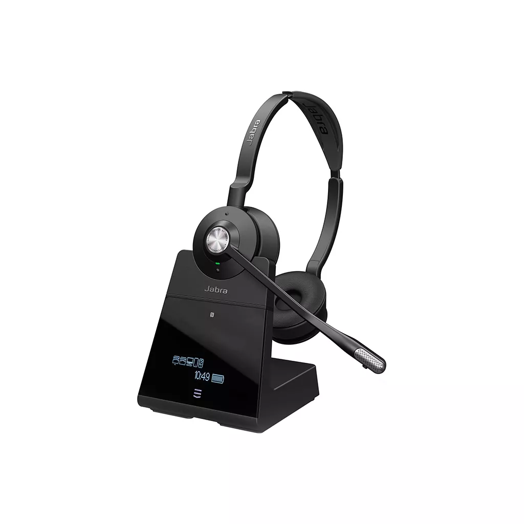 Профессиональная DECT-гарнитура на два уха, поддерживает подключение к 5 устройствам, интуитивно понятное управление вызовами, база для зарядки с сенсорной панелью: ответ, завершение разговора, отключение звука (mute), индикаторы заряда аккумулятора и подключение. DECT-технология с радиусом действия до 150 метров, широкополосное звучание, индикатор занятости на штанге микрофона, до 13 часов в режиме разговора, функция быстрой зарядки аккумулятора до 40% за 30 минут, стиль ношения — наголовье.