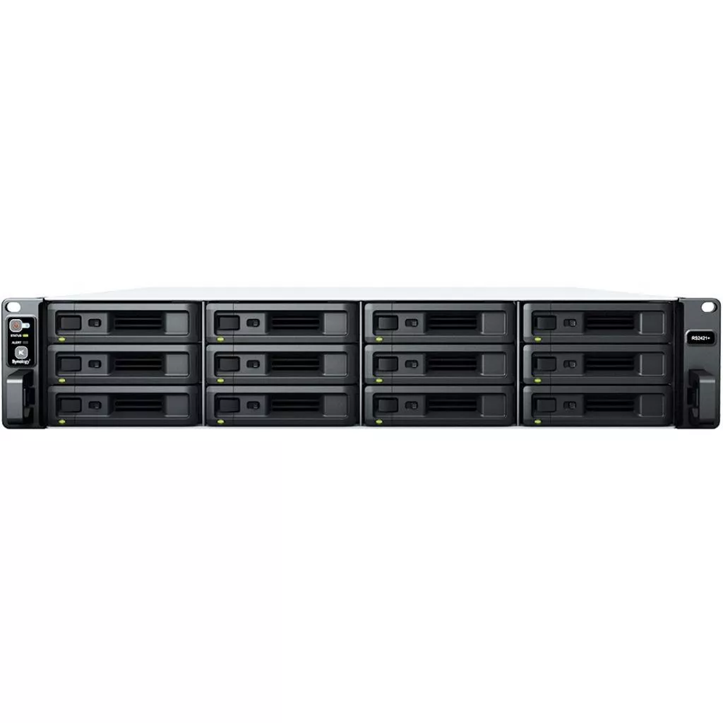 Synology RS2421+/RS2421RP+ — это универсальные серверы хранения высотой 2U из 12 отсеки, предназначенные для работы в различных корпоративных средах, имеющие возможность масштабирования до 24 дисков и предназначенные для экономического управления и обмена файлами, а также мощные возможности резервного копирования, предназначенные для предприятий с растущими объемами данных.Устройство обеспечивает скорость последовательного чтения 2200 МБ/ с блоками по 64 КБ и скорость последовательной записи 1154 МБ/с, а также может быть дополнительно расширен за счет SSD-кэша и сетевых устройств 10/25 Гбит/с.