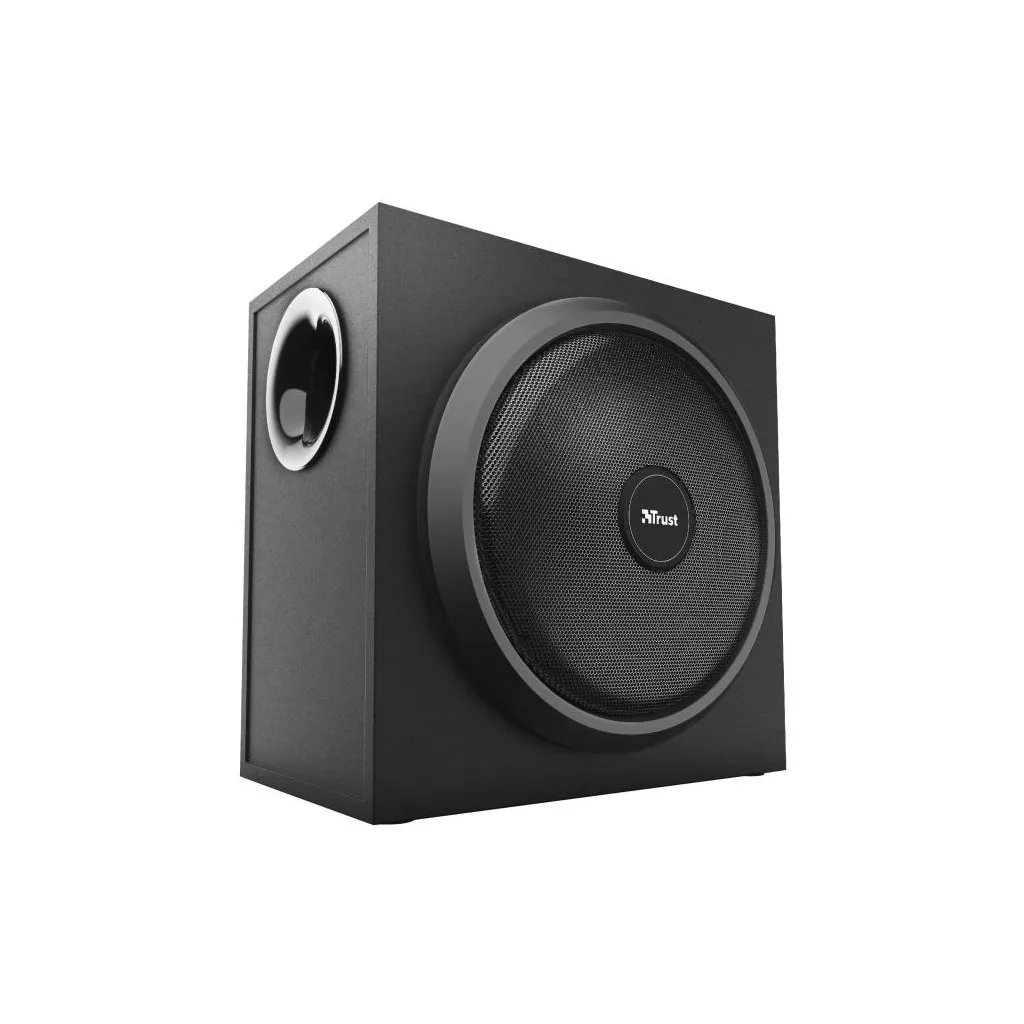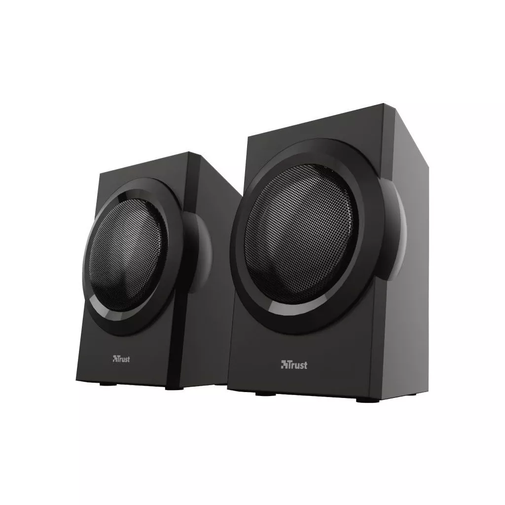 Акустическая система Trust Yuri 2.1 с сабвуфером обязательно привлечет внимание. Элегантный и компактный стильный дизайн черного цвета с деревянным сабвуфером. Его компактный размер означает, что он подходит для любой обстановки, будь то гостиная или домашняя студия.