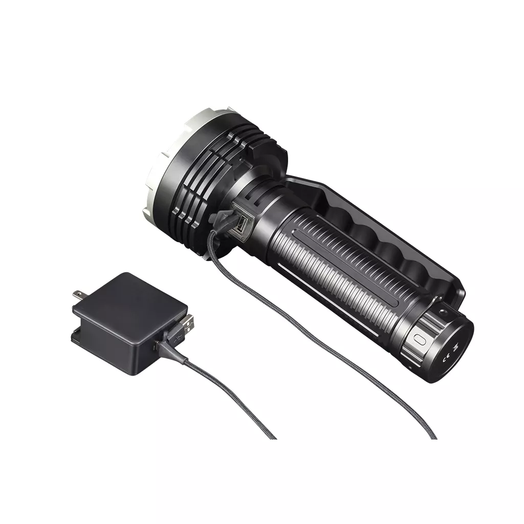 Фонарь модели Fenix LR80R представляет собой достаточно яркий, компактный прибор для проведения поисковых операций. Его максимальная яркость освещения достигает 18 000 люменов, в то же время дальность луча — более километра. Прекрасные возможности для практических задач. Светит мощный фонарь на батарейке 7,2 V/12000mah Li-ion, которая встроена прямо в корпусе фонаря. Аккумулятор отличается достаточно высокой производительностью, и без подзарядки фонарь способен проработать в течение 25 дней. Это помогает выполнять задачи, требующие высокой мощности.