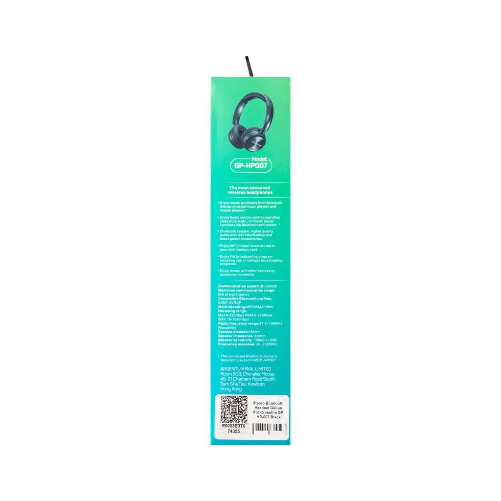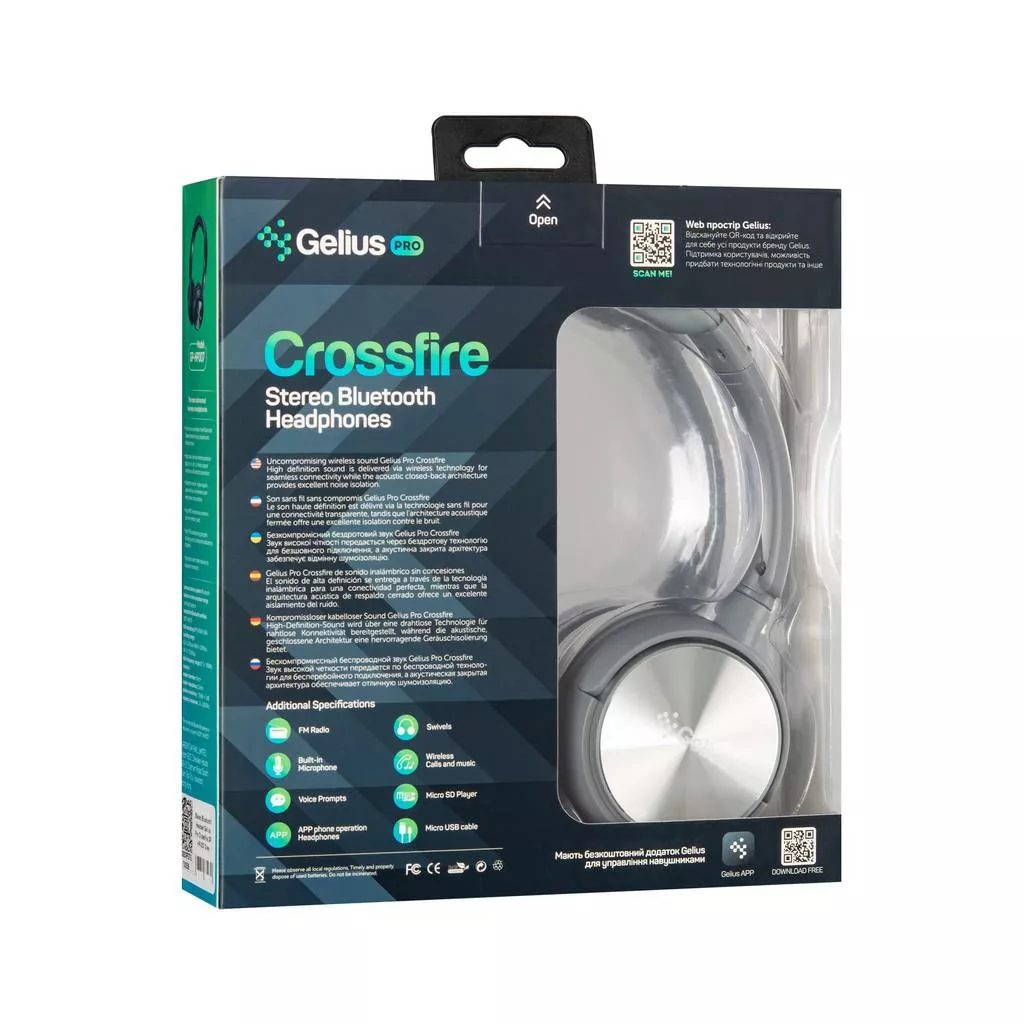 Наушники Gelius Pro Crossfire GP HP-007 Black сочетает в себе хорошее звучание, удобную конструкцию, высокую мощность, оптимальную чувствительность и стильный дизайн. Bluetooth наушники оснащены и укомплектованы динамиками 40 мм, звучание наушников сбалансировано, они отлично подойдут для воспроизведения музыки любой интенсивности и любой громкости без малейшего искажения звука. Gelius Pro Crossfire имеют удобное расположение портов и кнопок управления. На корпусе левого наушника расположена кнопка ответа на вызов. Наушники заряжаются с помощью MicroUSB кабеля. Также наушники оснащены и укомплектованы слотом для карт памяти MicroSD, что делает их mp3 плеером. Специально для меломанов компания Gelius разработала бесплатное приложение, с помощью которого можно настраивать и управлять наушниками. Чтобы его скачать, нужно считать QR код, который находится на упаковке наушников Gelius Pro Crossfire.