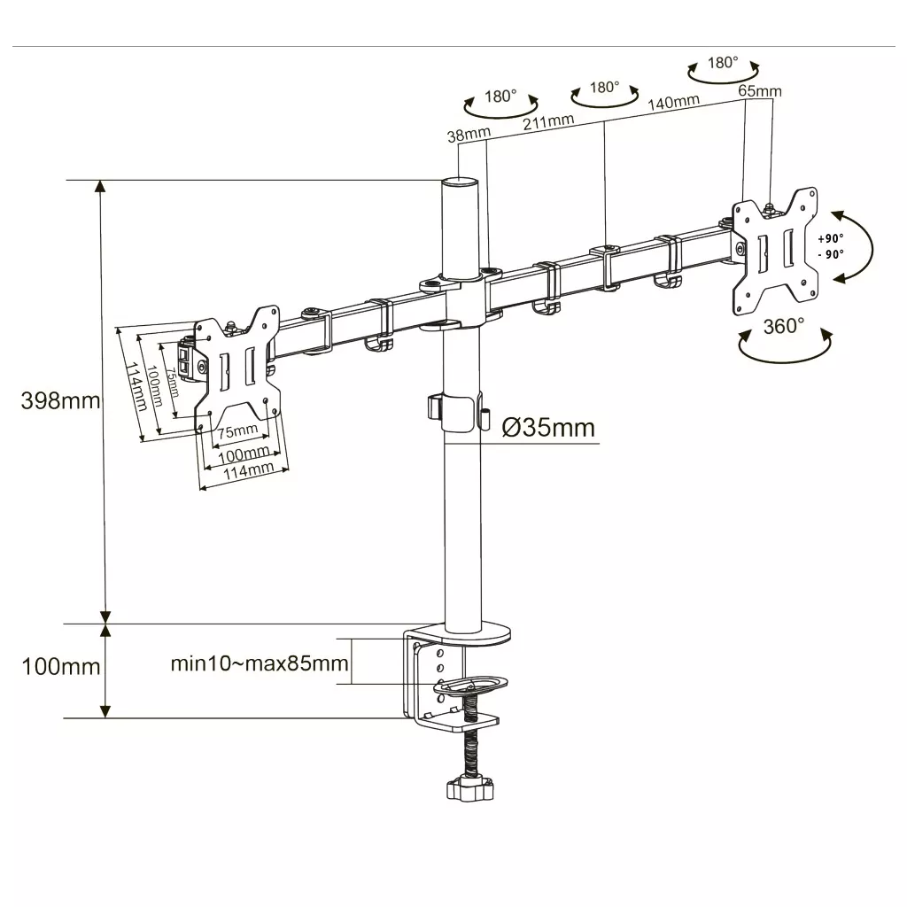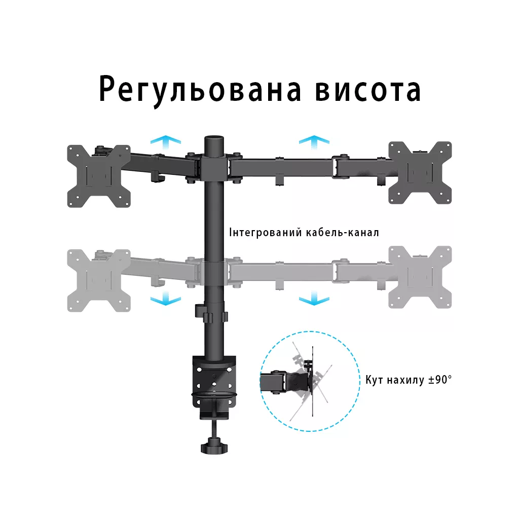 Угол наклона монитора на креплении можно отрегулировать в пределах от +90° до -90°