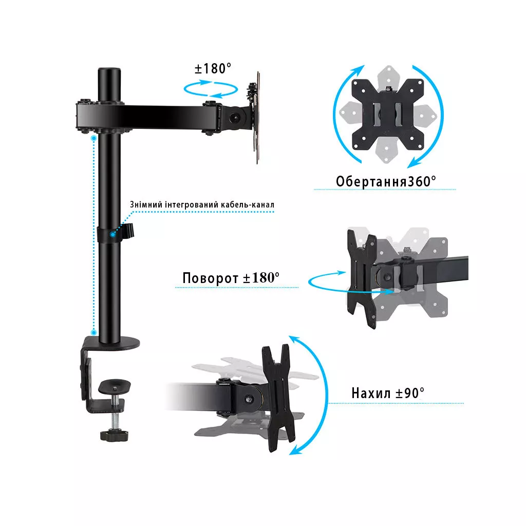 Угол поворота монитора на креплении можно отрегулировать в пределах от +180° до -180°