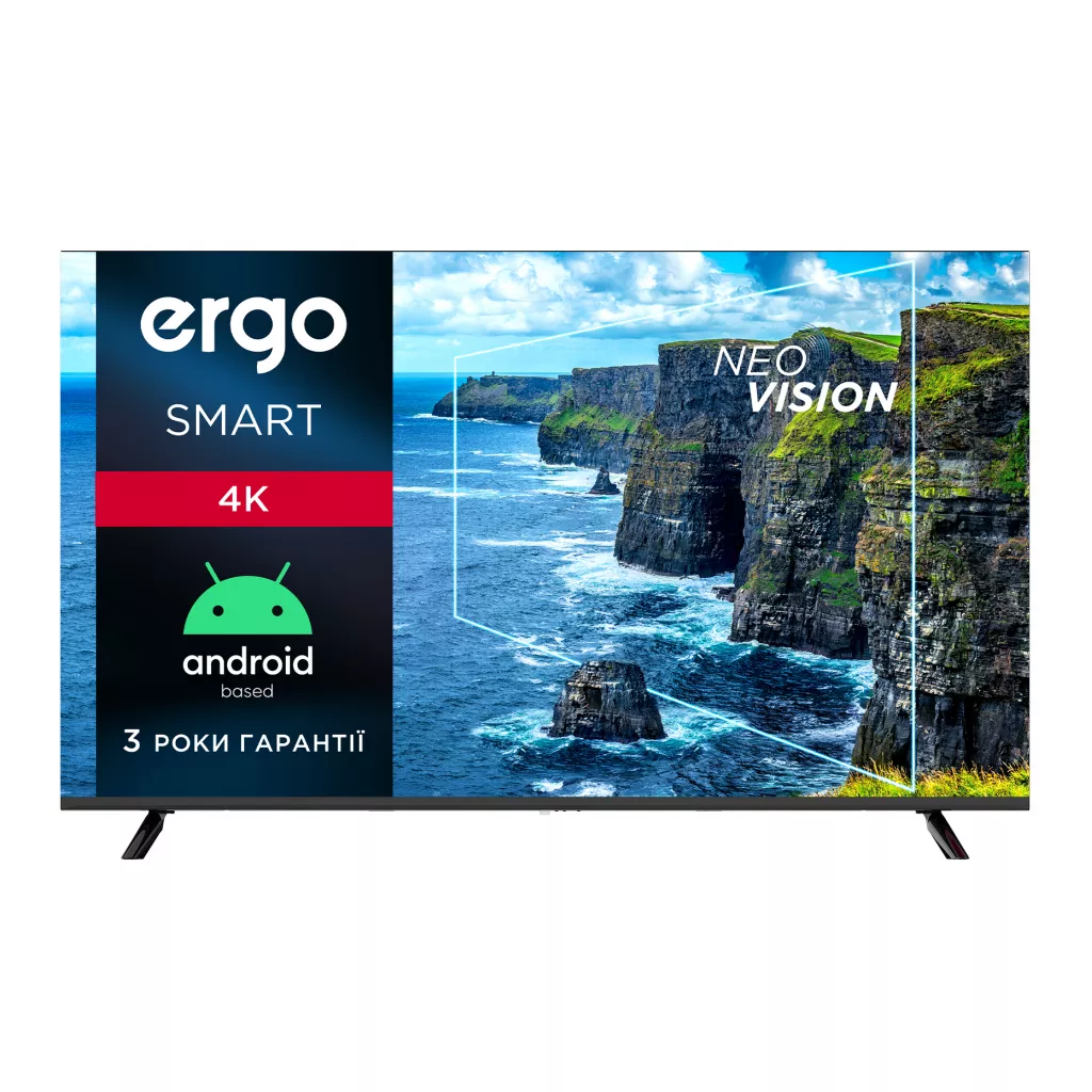 Ergo 55DUS6000 - отличный представитель современных телевизоров, оснащен и укомплектован 55-дюймовым экраном с разрешением 3840x2160 пикселей, предлагает широкий функционал с поддержкой Android TV и эргономичный дизайн, который легко впишется в любое время. .