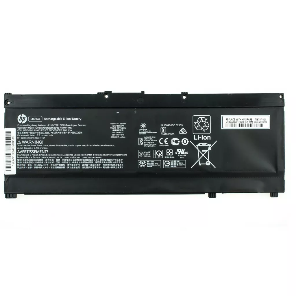 P/N совместимых аккумуляторов HSTNN-DB8Q, HSTNN-IB8L, L08855-855, L08855-856, L08934-1B1, L08934-2B1, SR03XL