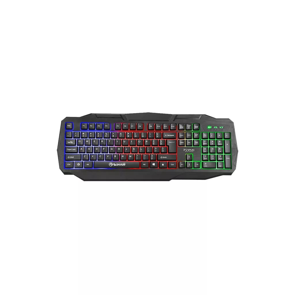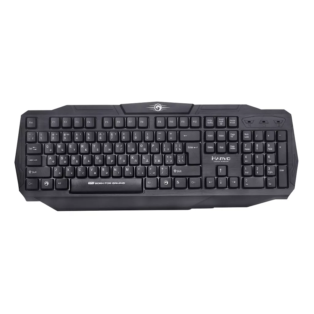 Удобная и комфортная мембранная клавиатура MARVO K601, с четким откликом и тихим звуком нажатия клавиш. Имеет мягкую подсветку 3-х цветов. Форма клавиатуры с поддержкой запястий для удобной работы и игр. Особенности:
