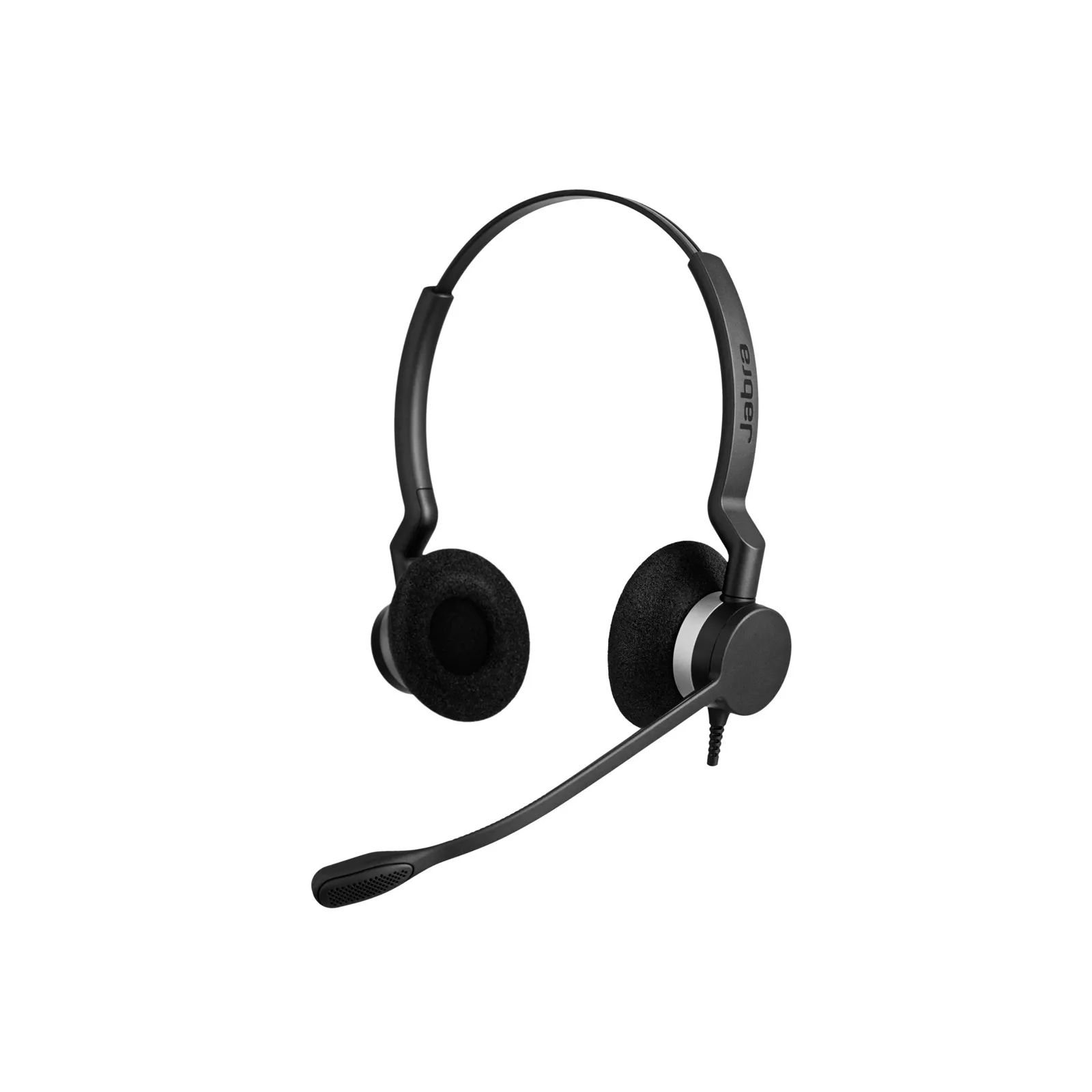 Гарнитура на два уха с поролоновыми гипоаллергенными амбушурами, под' соединение через QD, широкополосный звук, гибкая штанга микрофона с углом вращения 360, усиленный кевларовый кабель, наличие блока управления на шнуре гарнитуры. Сертифицирован для Microsoft Skype for Business/Lync. Гарнитуры идеально подходят для контакт-центров, требования которых – эффективность и высокая производительность. Конструкция Jabra Biz 2300 дает гарнитуре выдерживать сложные условия эксплуатации в интенсивно работающем контакт-центре.