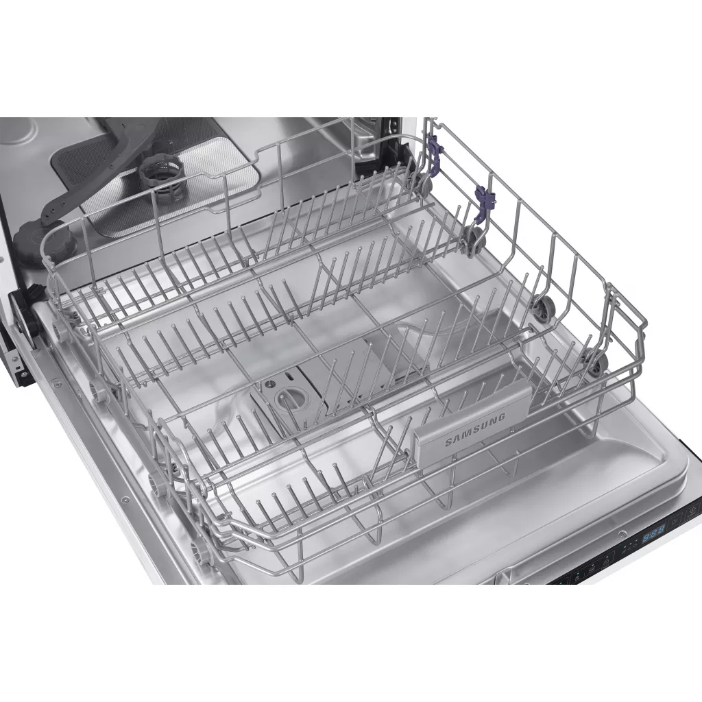 Чтобы вы могли легко мыть посуду любых размеров, в поддоне посудомоечной машины Samsung DW60M предусмотрена гибкая настройка высоты расположения. Это позволит эффективно разместить и тарелки, и кастрюли и чашки. При этом регулировка возможна уже в загруженном виде.