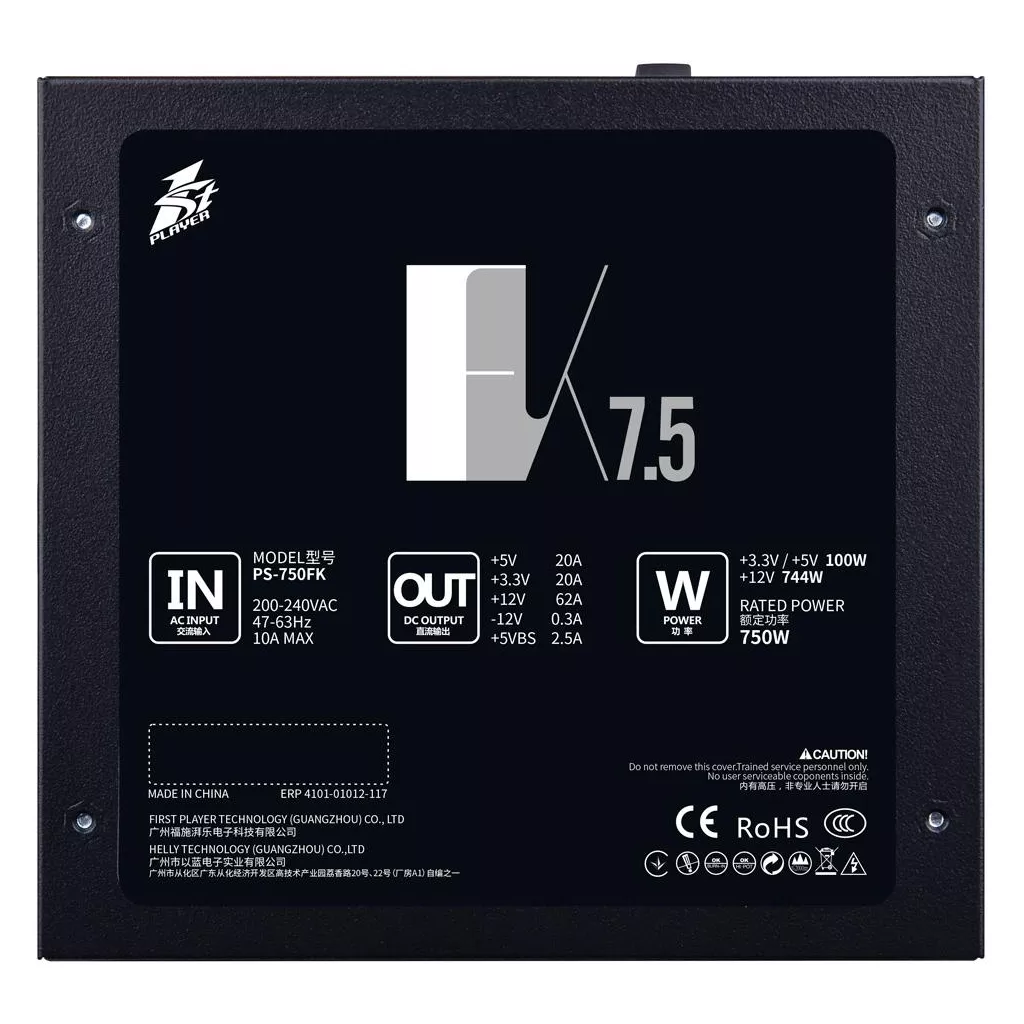 1st Player PS-750FK 750W — универсальный и надежный блок питания, отвечающий современным потребностям персональных компьютерных систем. Он обеспечит высокую надежность и эффективность наряду с тихой работой – лучшая комбинация характеристик, производительности и качества в своем классе по отличной цене. В элементной базе блока питания применены надежные и долговечные конденсаторы, а для предотвращения выхода блока питания из строя используется множество различных технологий защиты.