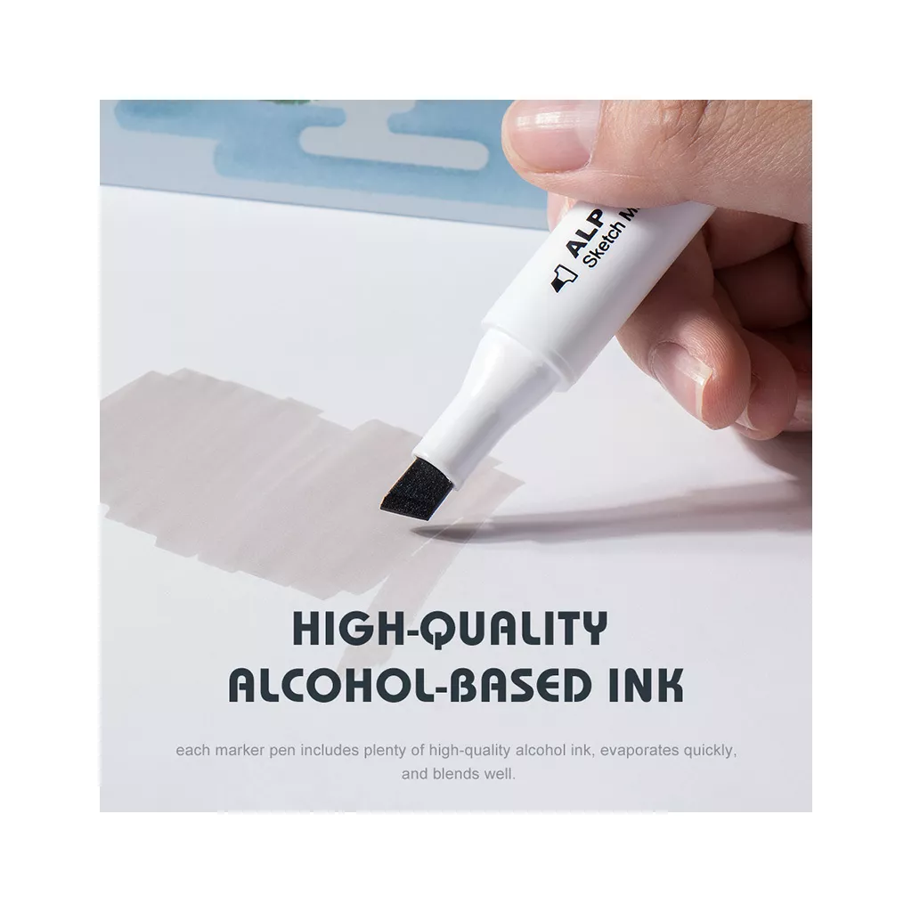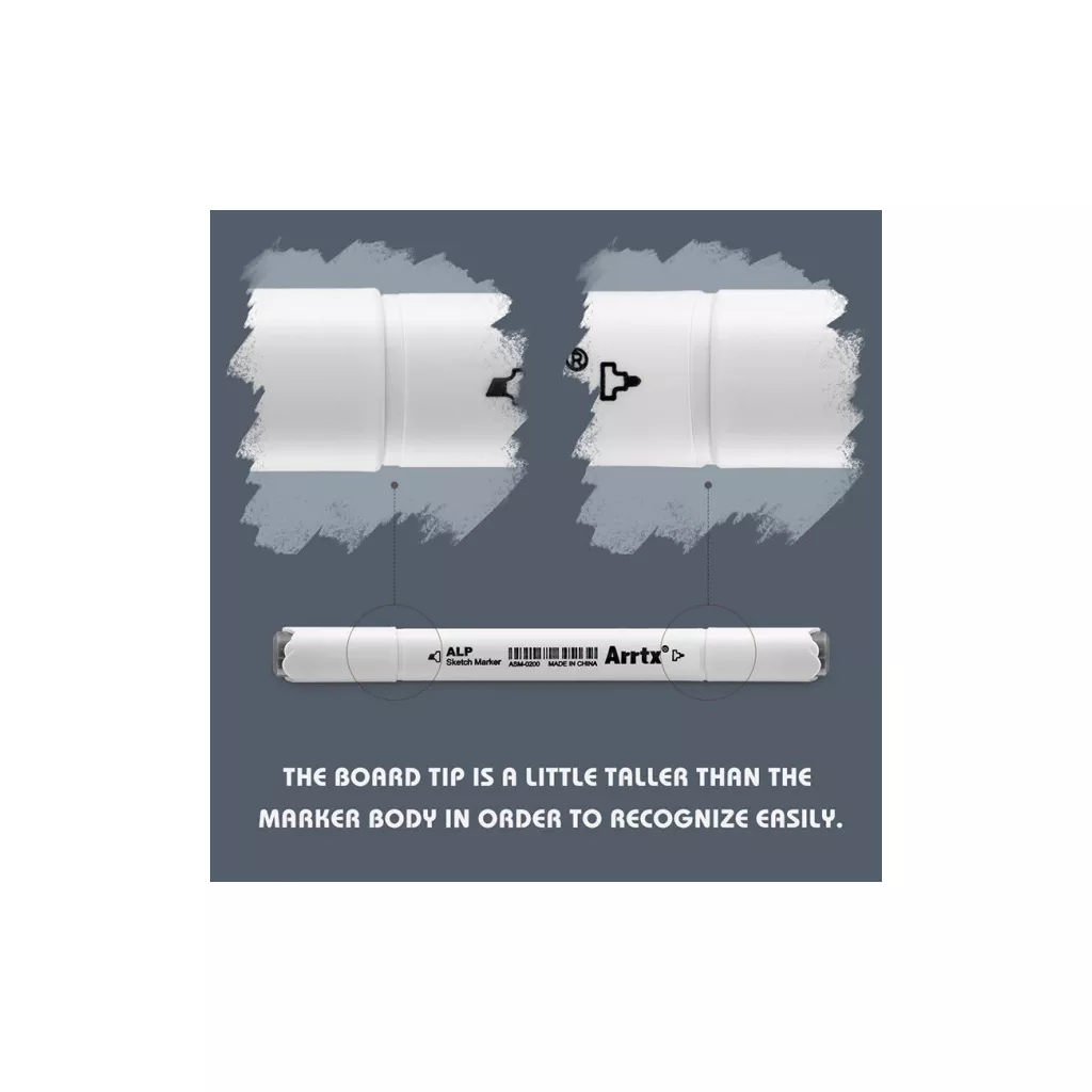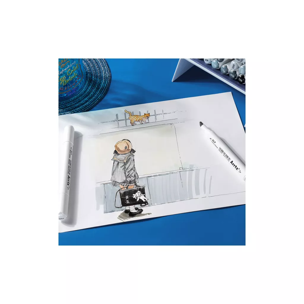 Два бесцветных блендера: предоставлены 2 бесцветные ручки для создания более нежного цвета. Все маркеры Arrtx ALP с отличным эффектом смешивания. Их можно использовать для смешивания цветов, освещения, предварительного замачивания бумаги. Эффект предварительного замачивания может иметь разную эффективность в зависимости от типа бумаги.