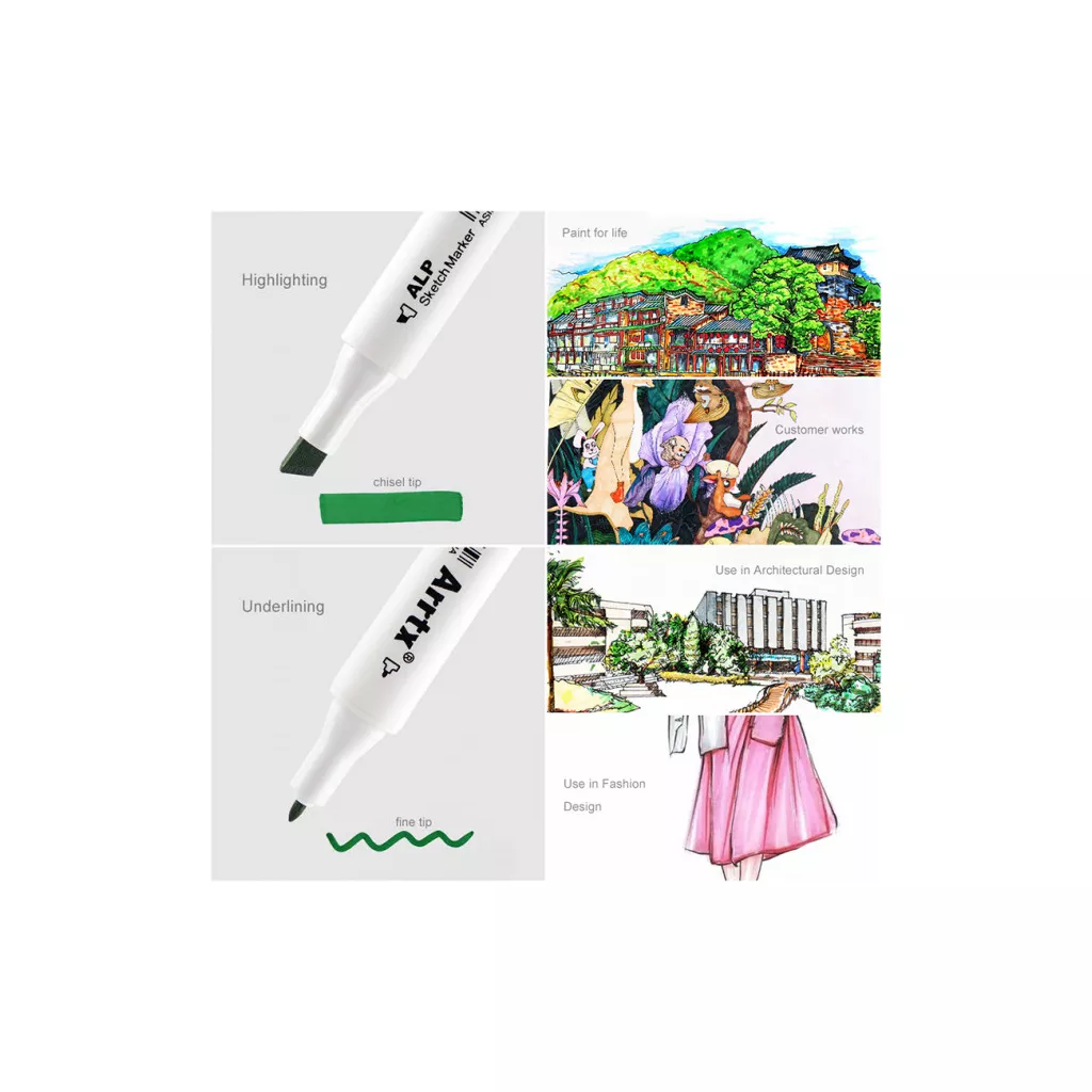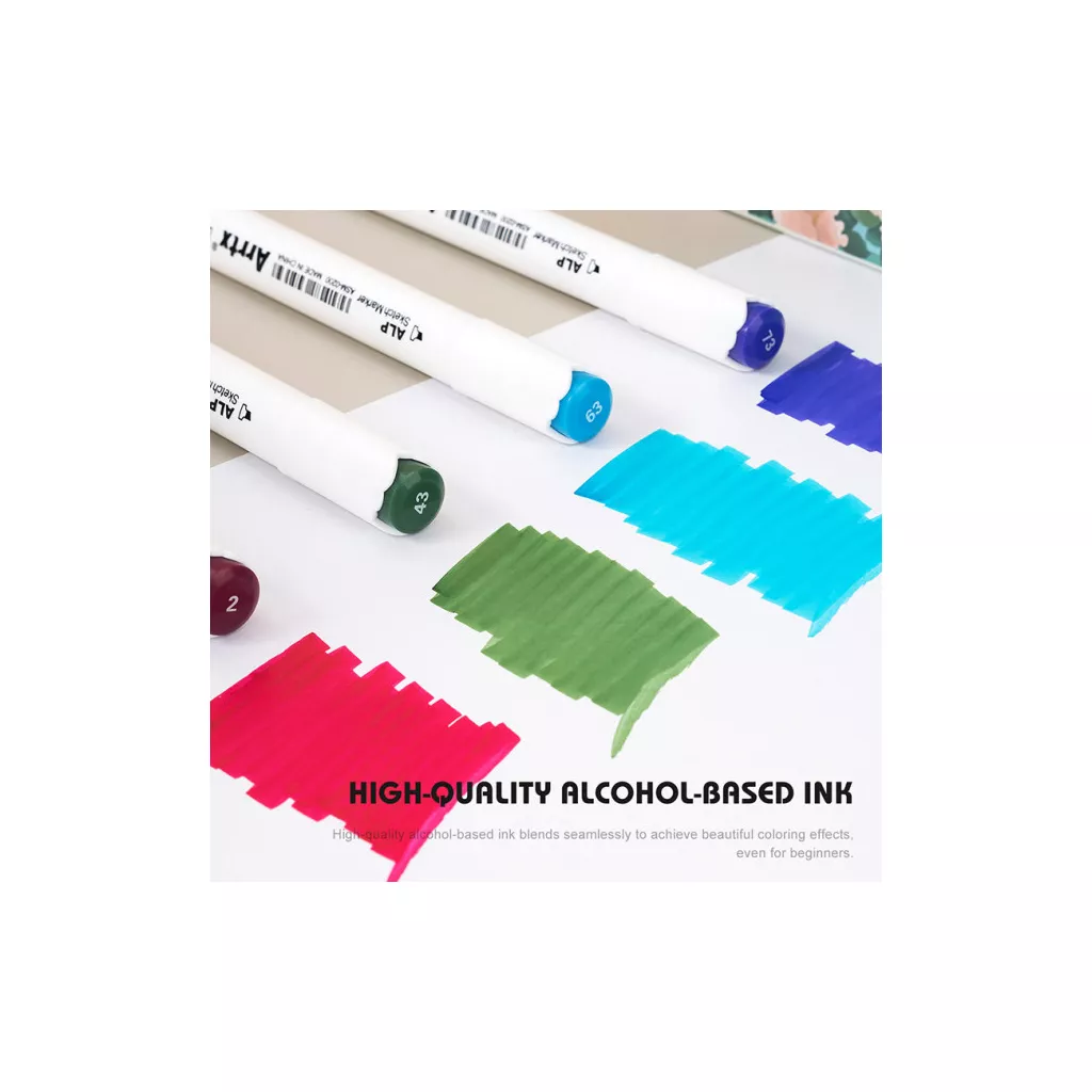 Чернила на спиртовой основе: Высококачественные чернила на спиртовой основе безупречно смешиваются для достижения хороших цветовых эффектов даже для начинающих. Быстро высыхает без пятен и не оставляет пятен во время работы. Набор оборудован палитрой цветов, которая поможет вам определить и записать фактический цвет маркеров. обработки деталей и большого покрытия зоны.