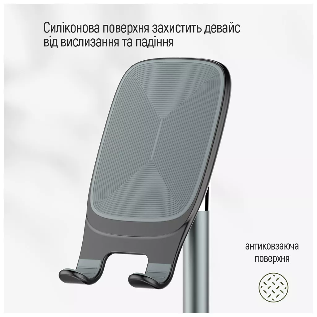 максимально и в полном объеме проста и удобна в эксплуатации. Силиконовая поверхность подставки предотвратит скольжение гаджета и убережет его от царапин, а функциональный вырез позволит в любой момент подключить кабель зарядки. Для надежного размещения держателя на поверхности на нижней части подставки имеются силиконовые антискользящие прокладки. Продуманный элегантный дизайн подставки гармонично впишется в любой интерьер без места.