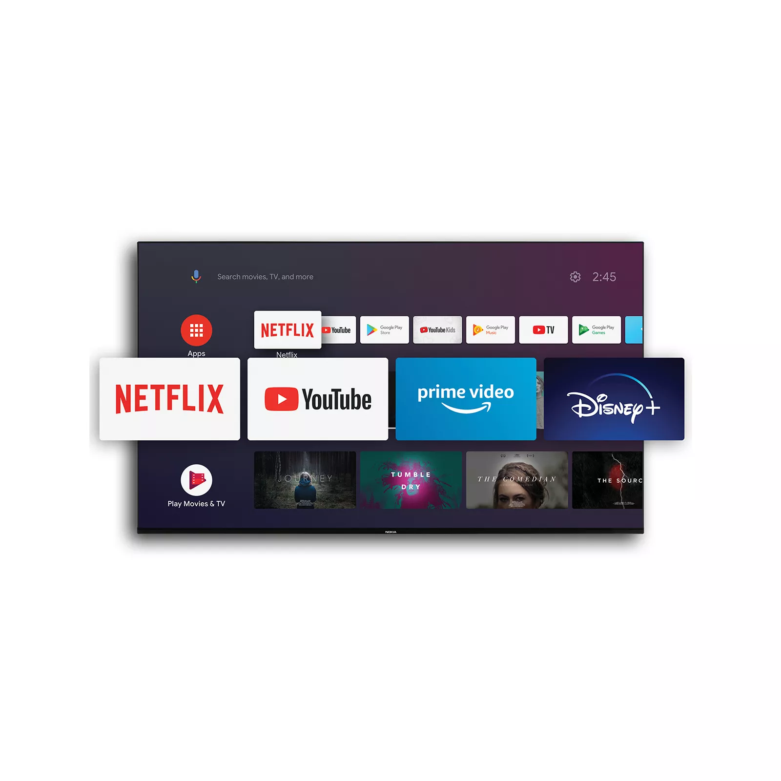 Откройте для себя мир развлечений Ваш Nokia Smart TV с Android делает это Транслируйте тысячи фильмов и телепередач с Netflix, Disney+, YouTube, Prime Video и др. И почувствуйте все это на кристально чистом 55-дюймовом экране.Прямо с вашего дивана.