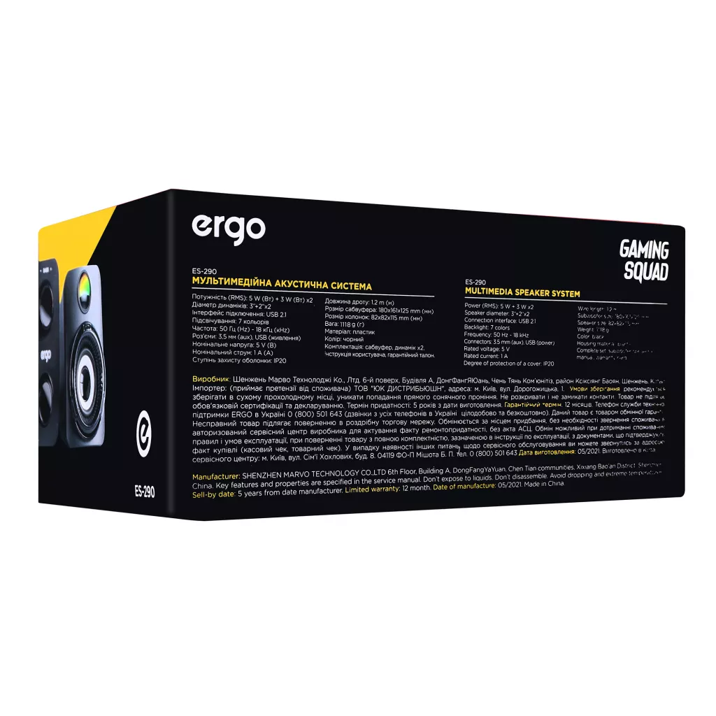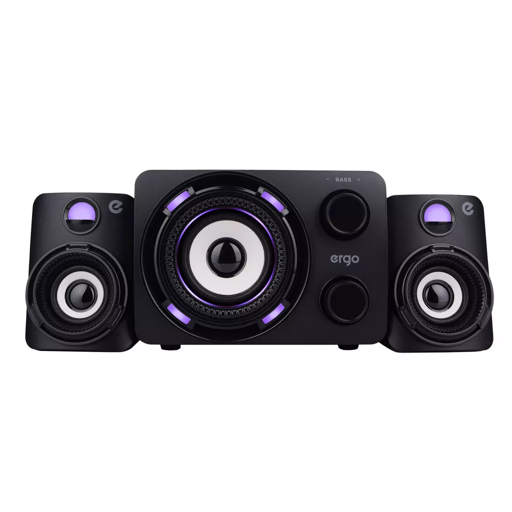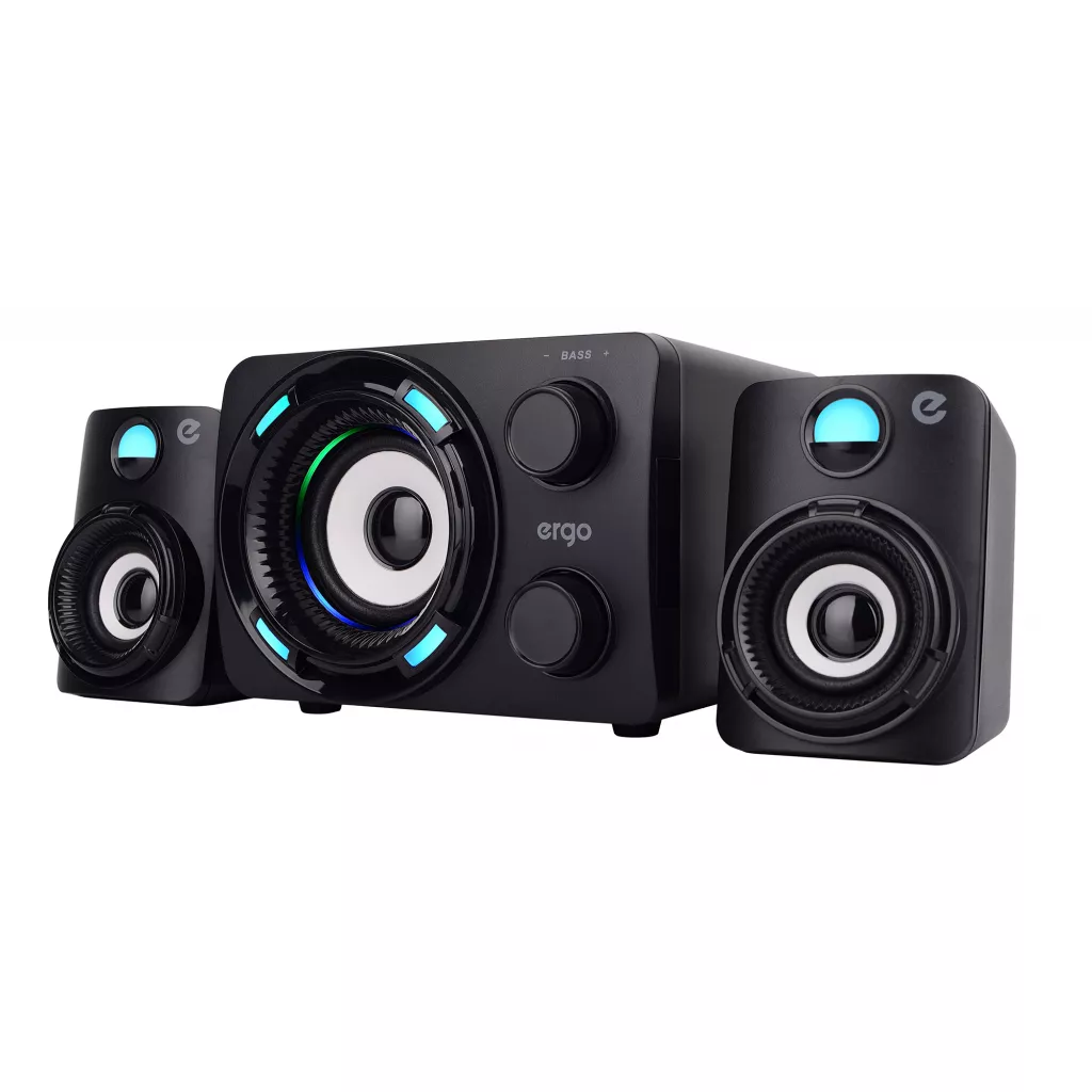 Мультимедийная акустическая система ERGO ES-290 — то, что нужно настоящему меломану. Две большие колонки и сабвуфер гарантируют отличное звучание любого аудиоконтента, а LED-подсветка делает технику еще более стильной. Оригинальный дизайн, подсветка и возможность подключения к практически любому носителю звукового контента — вот основные преимущества модели. х 161 х 125 мм), звуковые динамики 3"+2" х2 внутри колонок и сабвуфера создают невероятно насыщенный и объемный звук. Акустическая система воспроизводит частоты 50 Hz (Гц) – 18000 kHz (кГц). Это позволяет насладиться любимой музыкой, фильмами или клипами.