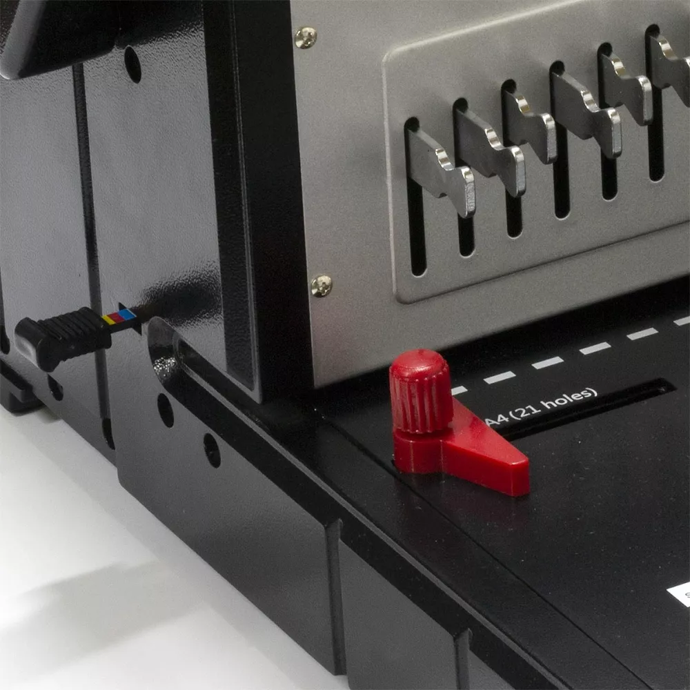 Имеет две независимые ручки: для перфорации и для переплета, что увеличивает производительность.