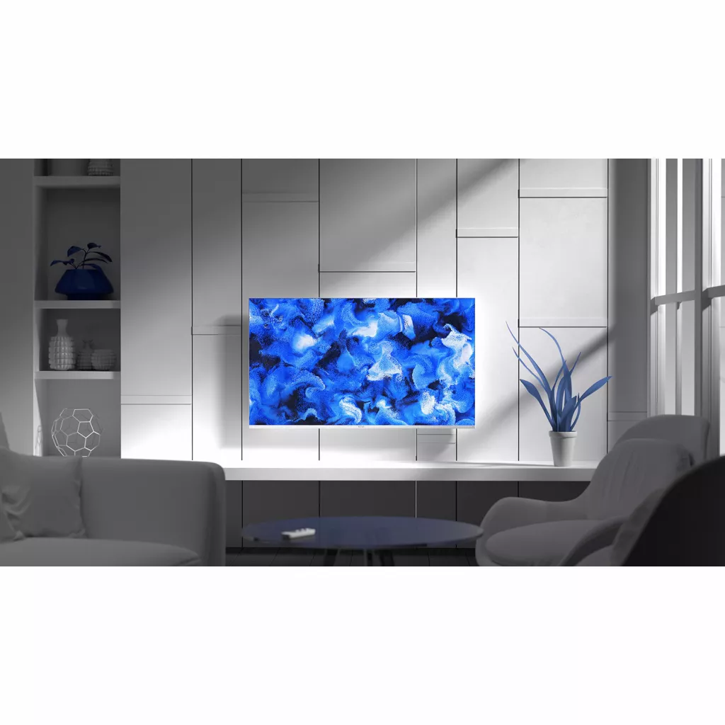Корпус телевизора белого цвета гармонично впишется в любое какой интерьер.
