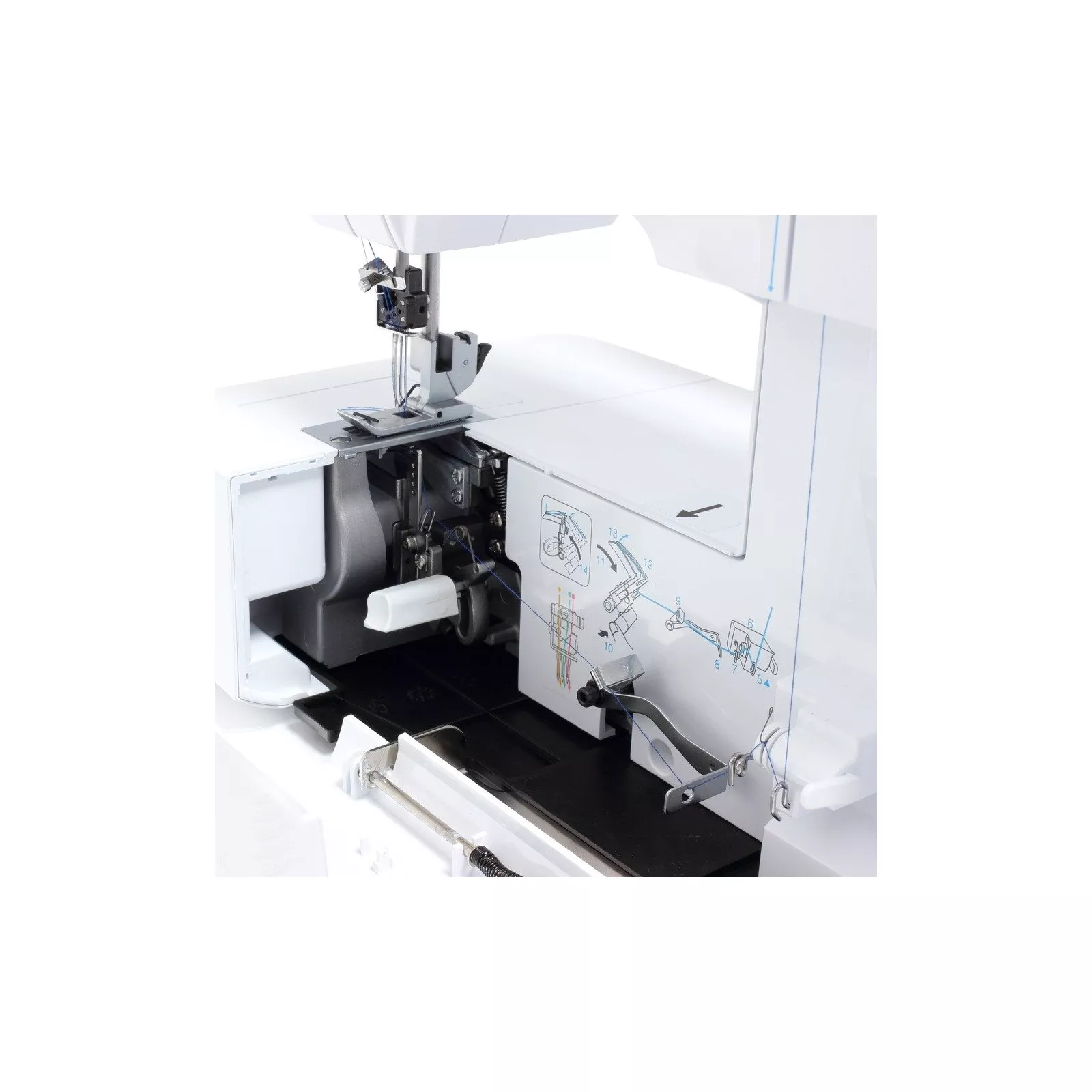 | Технические особенности | двойной подъем кавычки, регулировка давления кавычки на ткань, съемный рукав для обработки малых радиусов |