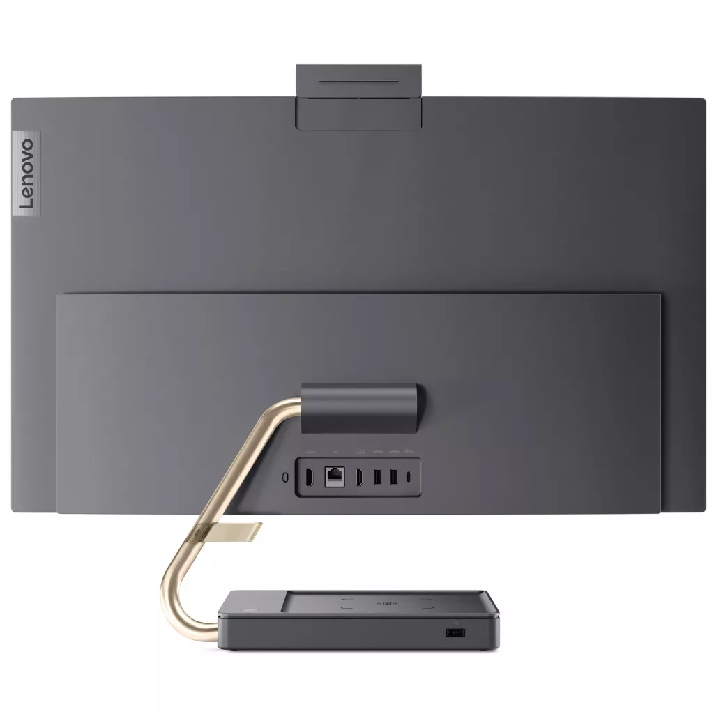 Модель выполнена в сером цвете. Устройство на подставке, которая служит беспроводной зарядной станцией для смартфона, занимает немного места на рабочем столе. Lenovo ideacentre AIO 5 27IOB6 укомплектован мышью и клавиатурой и готов к работе сразу после распаковки. Порты USB-C 3.2, USB 2.0, USB 3.2, разъемы HDMI позволяют подключать периферию и другие устройства и обмениваться с ними данными.