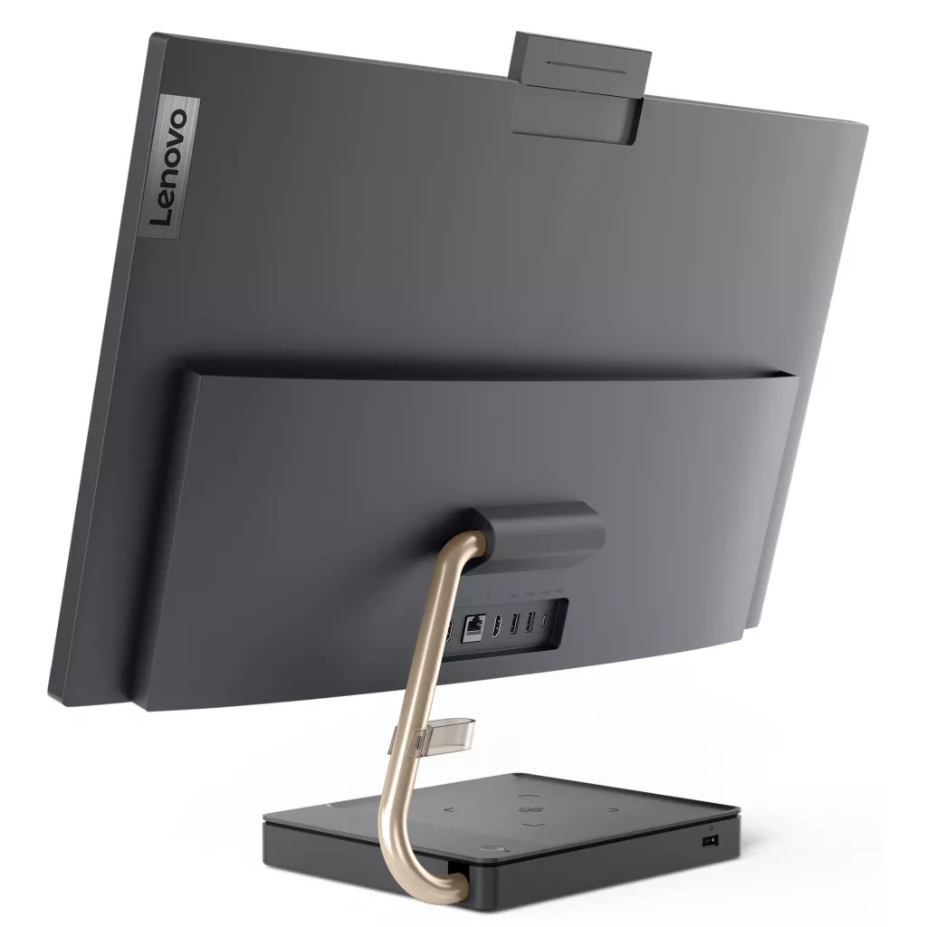 Модель выполнена в сером цвете. Устройство на подставке, которая служит беспроводной зарядной станцией для смартфона, занимает немного места на рабочем столе. Lenovo ideacentre AIO 5 27IOB6 укомплектован беспроводной мышью и клавиатурой и готов к работе сразу после распаковки. Порты USB-C 3.2, USB 2.0, USB 3.2, разъемы HDMI позволяют подключать периферию и другие устройства и обмениваться с ними данными.