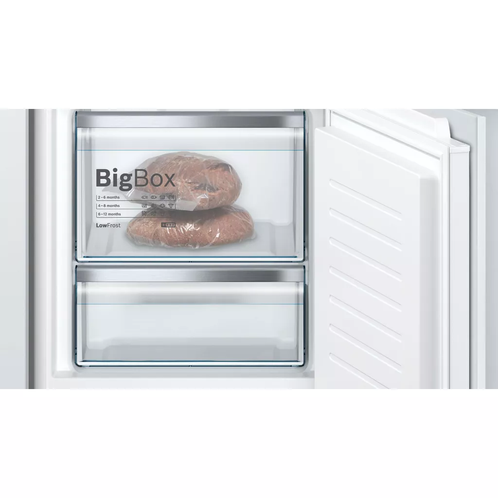 Контейнер для глубокой заморозки продуктов, таких как стейки или пицца. Неважно, нужно ли вам подготовиться ко дню рождения ребенка или заморозить свадебный торт – в BigBox вы найдете достаточно места. стеклянные полки особенно просты в использовании благодаря плавному выдвижному механизму.