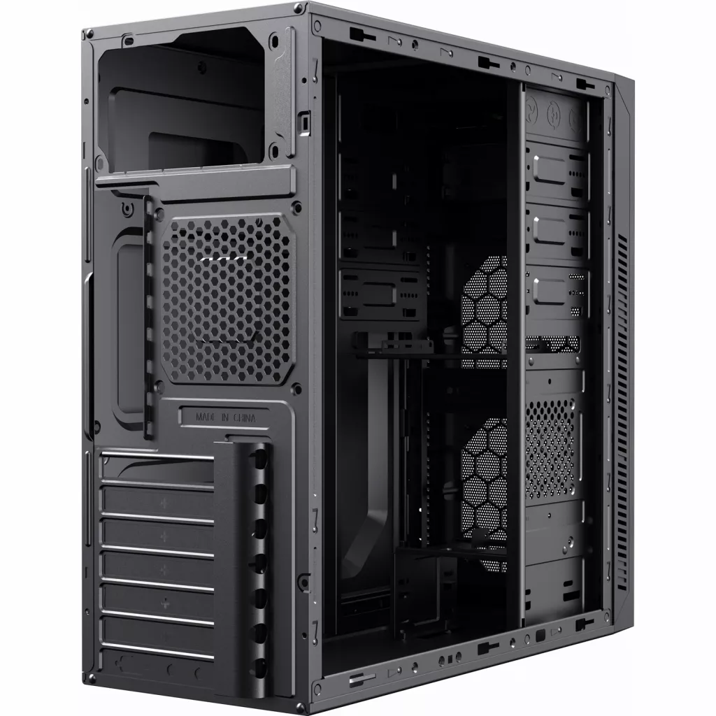 Корпус имеет все необходимые разъемы и интерфейсы, такие как USB, аудиоразъемы для наушников и микрофона. Хорошую циркуляцию воздуха обеспечивают вентиляционные отверстия боковой и задней панелей.