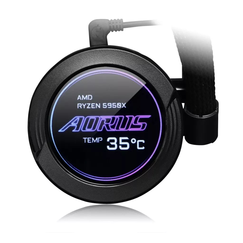 Gigabyte Aorus WaterForce 360 — система жидкостного охлаждения замкнутого цикла с ЖК-дисплеем. Новый мощный насос создает необходимые условия для эффективного охлаждения высокопроизводительных процессоров. Уникальный 60x60 мм полноцветный ЖК-дисплей позволяет просматривать графическую/текстовую информацию и другой видеоконтент. Ориентацию дисплея можно настроить, он вращается на 330° по оси симметрии.