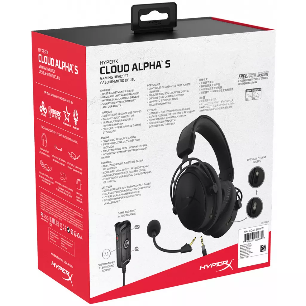 Гарнитура HyperX Cloud Alpha S создана на основе передовой системы Cloud Alpha и отличается виртуальным объемным звуком HyperX 7.1. С помощью входящего в комплект микшера управления звуком можно включить объемный звук и настроить баланс громкости для игры и разговора, не заходя в какие-либо меню. Слайдеры регулировки низких частот были добавлены в чашки наушников, предоставляя возможность персонализировать звук. Cloud Alpha S по-прежнему выделяются системой двухкамерных динамиков, которая уменьшает искажение и обеспечивает более чистый звук, а также фирменным комфортом HyperX, обеспечивающим чашки наушников из пены с эффектом памяти, дополненные кожзаменителем с повышенной воздухопроницаемостью.