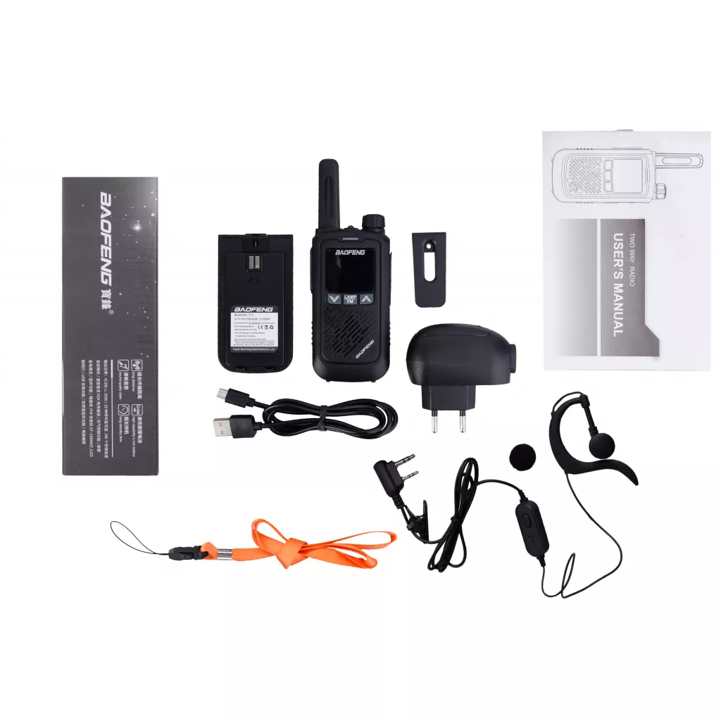 | Комплектация | Рация – 2 шт. Аккумулятор – 2 шт. Гарнитура – 2 шт. Клипса – 2 шт. Ремешок для ношения – 2 шт. Зарядный USB-кабель – 2 шт. Адапт |
