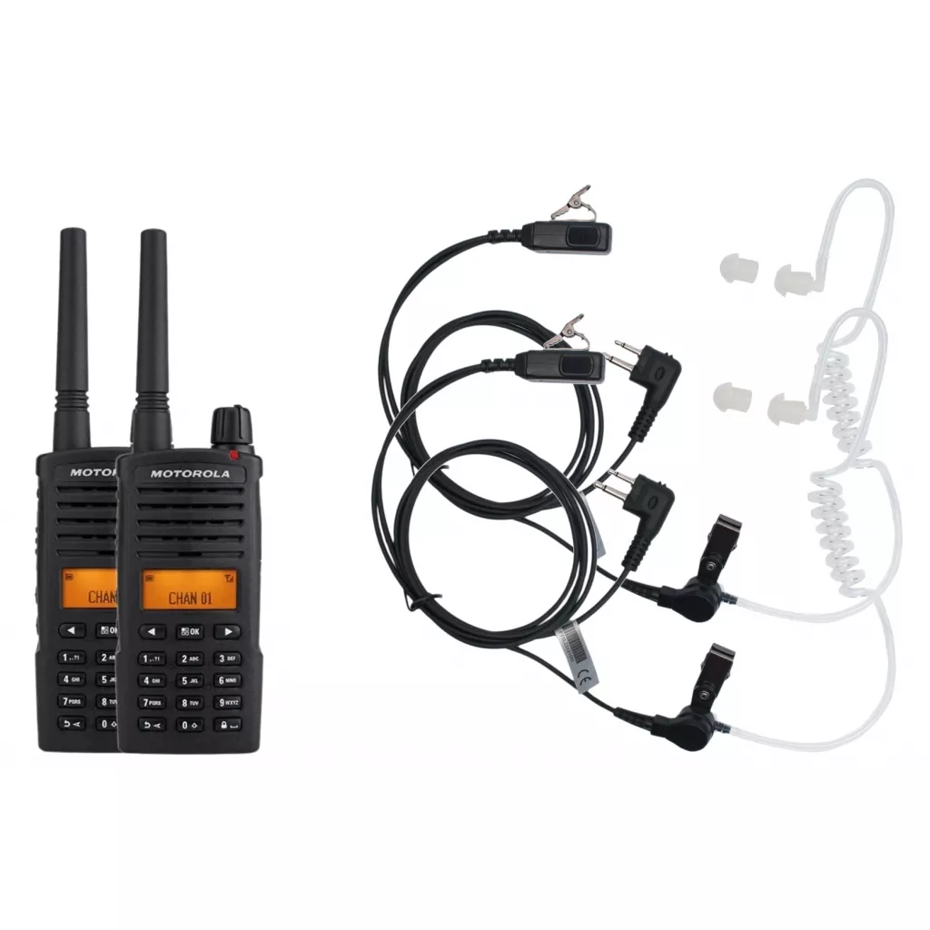 | Комплектация | Радиостанция – 2 шт. Гарнитура с прозрачным звуководом – 2 шт. Клипса для ношения радиостанции на поясном ремне – 2 шт. Батарея |