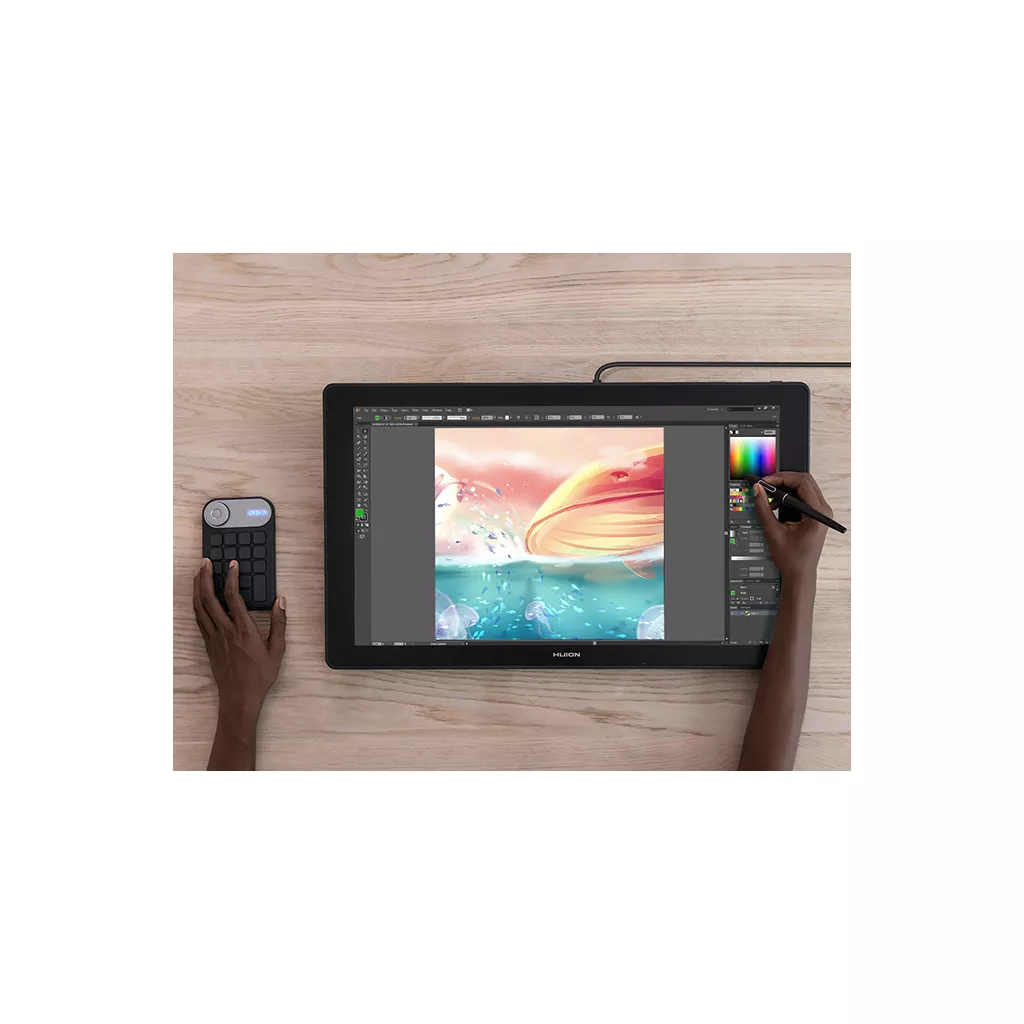 Благодаря чувствительности давления линии разной 8192 ширины и насыщенности смотрятся естественно. Кроме того, наклон ±60° и частота опроса в 300PPS мгновенно и естественно улавливает любое движение пера. KD100, идеальное дополнение к цифровому творчеству. На Kamvas Pro 24 (4K) нет кнопок, а мини- Клавиатура KD100, которая идет в комплекте с дисплеем для графического пера, дает пользователям большую маневренность в управлении полотном или регулировке размера кисти. 18 программируемых кнопок предназначены для эффективного и отлаженного рабочего процесса.