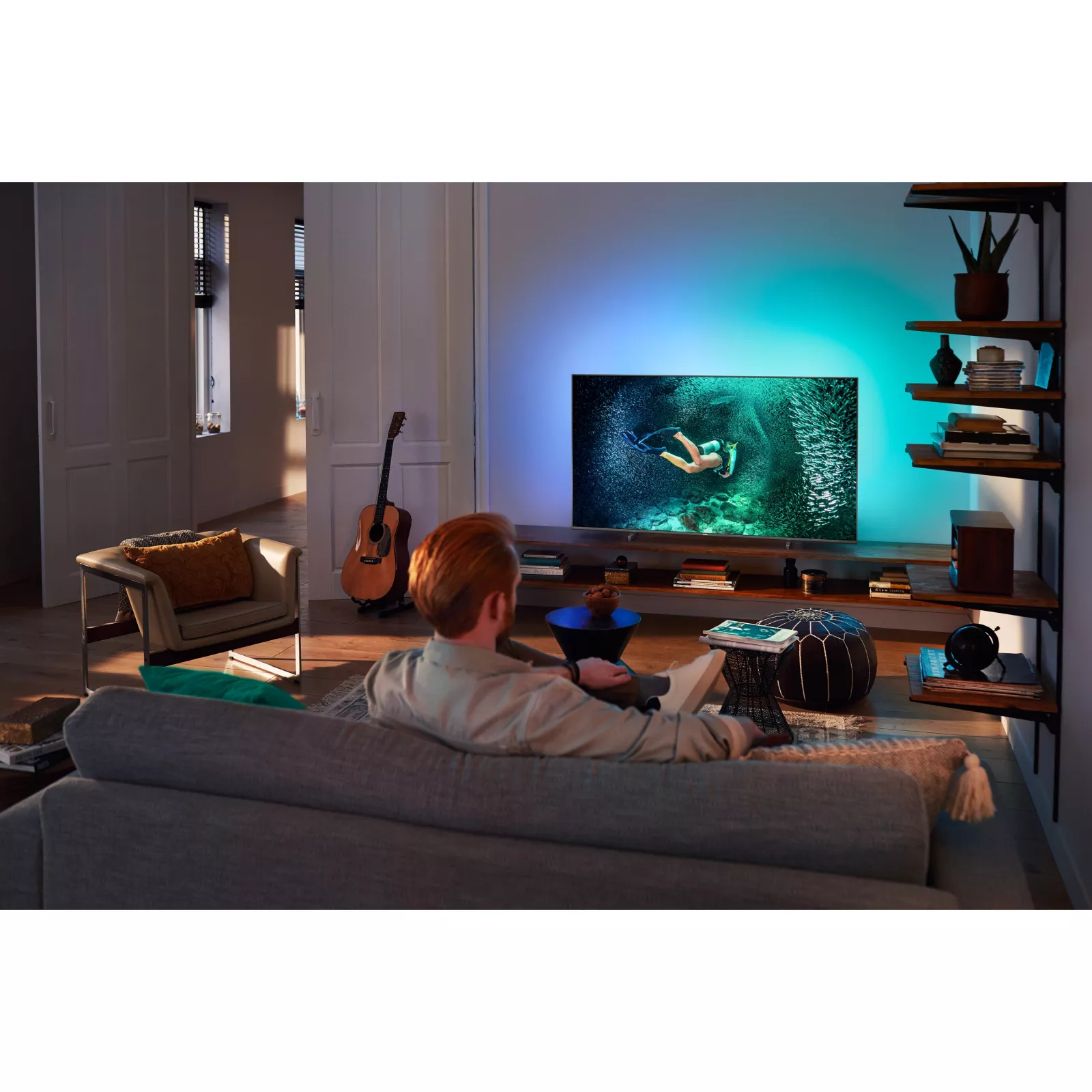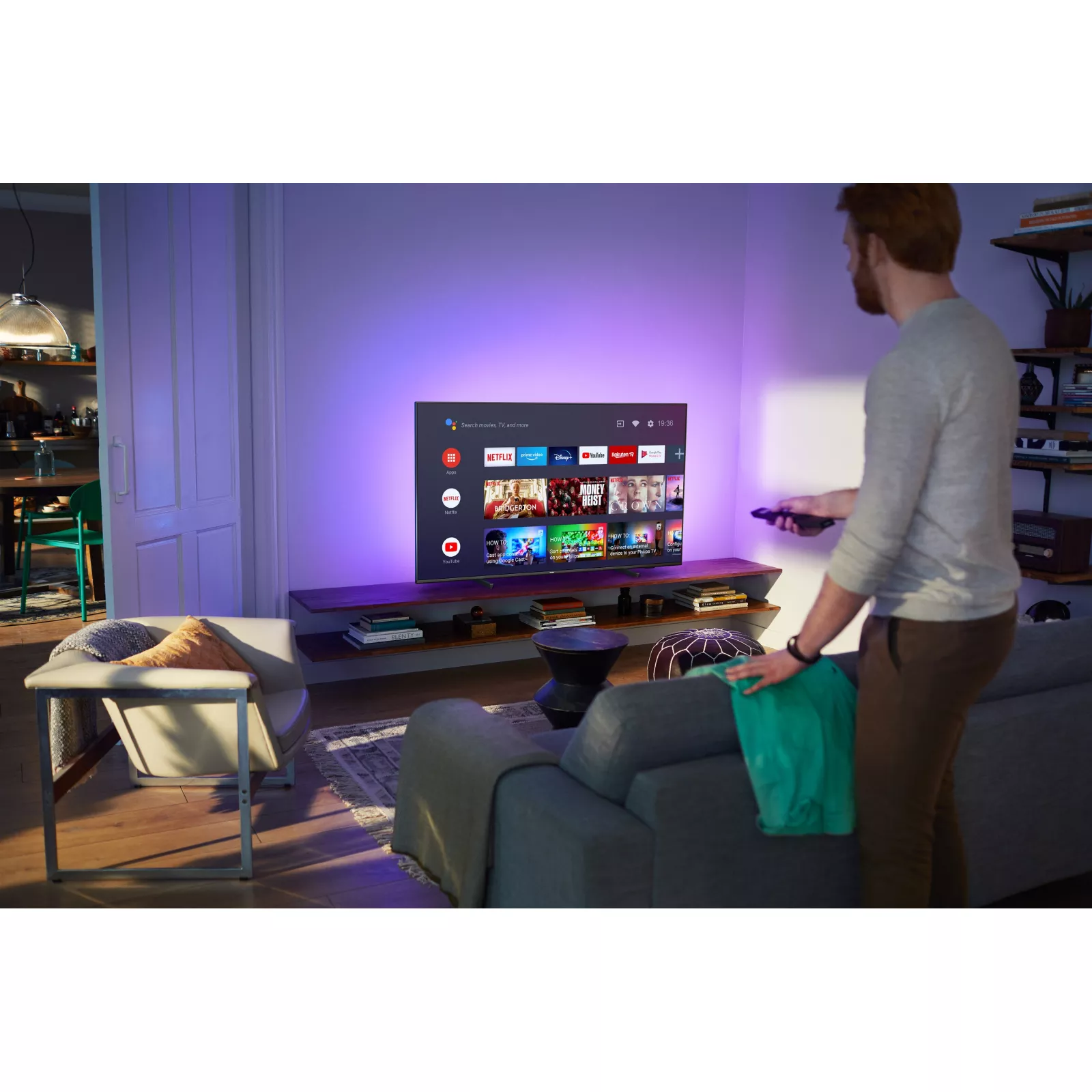 Великолепное реалистичное изображение на экране этого телевизора Philips 4K на базе Android TV. а функция Ambilight обеспечивает полное погружение во время просмотра фильмов, телепередач и во время игр.. Премиальное звучание Dolby Atmos для соответствия роскошному изображению. UHD.