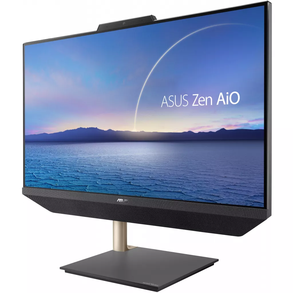 >ASUS Zen AiO 24 – это хороший и функциональный компьютер, выполненный по принципу «все в одном». Высокая производительность сочетается со стильным дизайном с оригинальными деталями в виде смещенной от центра металлической подставки и покрытой тканью динамиков, сертифицированных компанией Harman Kardon. Моноблок оснащается тонкорамочным сенсорным дисплеем NanoEdge с диагональю 23,8” и относительной площадью 93%.