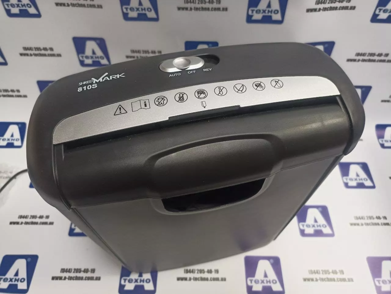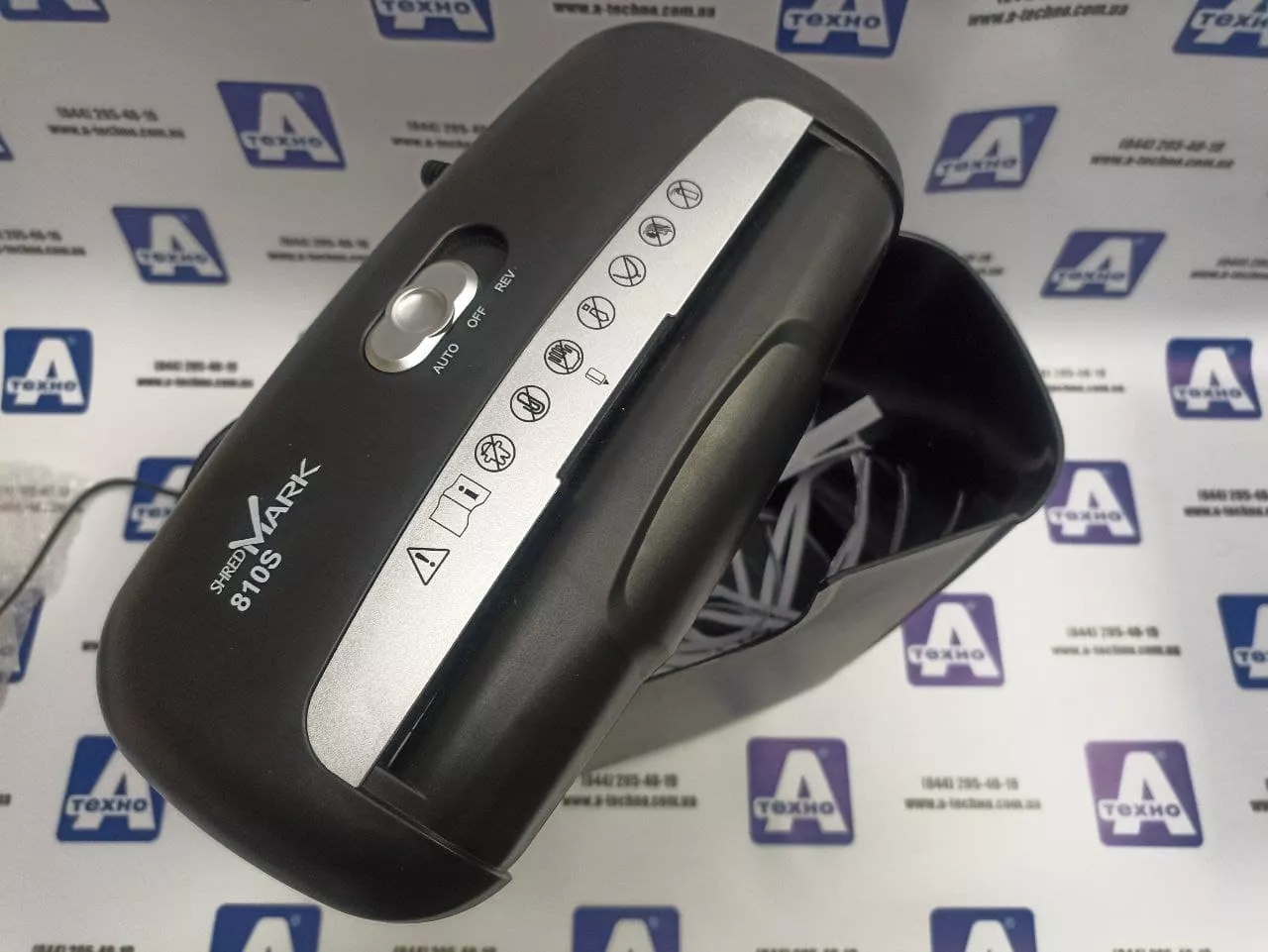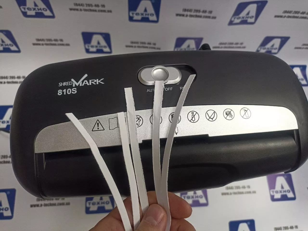 Уничтожитель бумаги, шредер shredMARK 810S (6мм). Категория персональный, для дома. Мощность измельчения 9 листов бумаги (А4, 70г). Тип резки параллельная (продольная). Ширина полосок 6 мм. DIN уровень секретности 2. Рабочая ширина 220 мм. Объем корзины 10 литров. Автоматический старт/стоп - механический. Реверс есть. Термозащита двигателя от перегрузок есть. Уничтожение скрепок есть. Уничтожение пластиковых карточек есть. Уровень шума 68 дБ. Рабочий цикл “вкл”/”выкл”, мин 2/30. Размер 392х142х326 мм. Вес 1,5 кг.