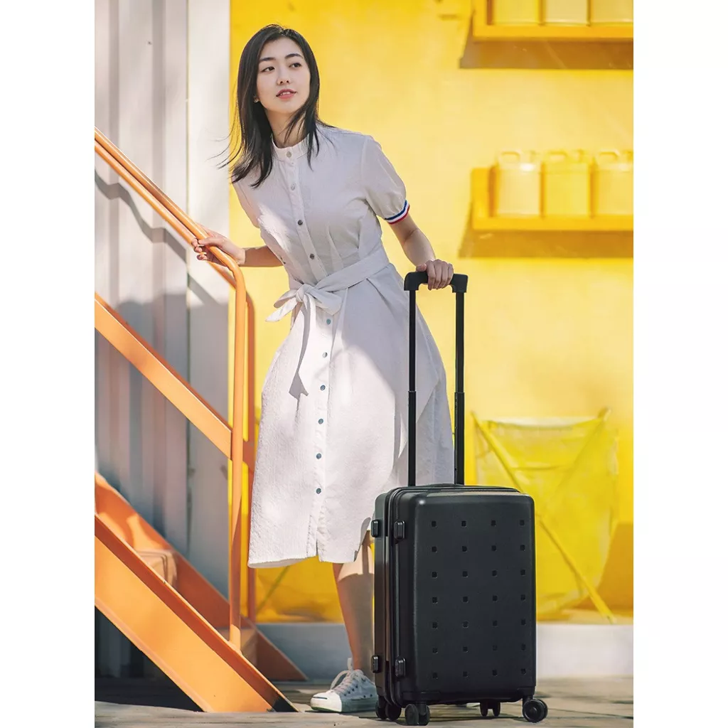 Чемодан RunMi Ninetygo Suitcase выполнен в симпатичном минимализме, без излишеств и представлен в нескольких цветовых вариациях. Корпус чемодана изготовлен из прочного полипропилена. Он имеет многослойную композитную структуру и имеет хорошую устойчивость к механическим повреждениям.