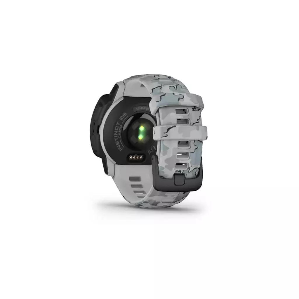 Прочные часы Instinct 2 Solar обладают защитой от воды до 100 метров, а также выдерживают влияние высоких температур и ударов. Его корпус изготовлен из полимера упрочненного волокнами, а экран покрывает химически усиленное стекло Corning® Gorilla® Glass с защитой от появления царапин.