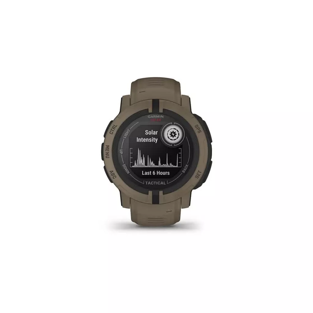 Прочный смартчас Instinct® 2 Solar Tactical с GPS-приемником оснащен и укомплектован специальными тактическими функциями и подзарядкой от солнца для более длительной работы от батареи.