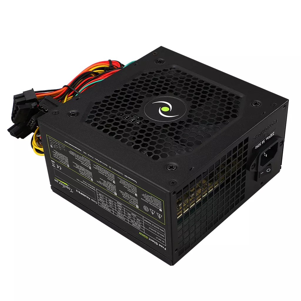 Внутренний блок питания для персонального компьютера, мощность 650 Вт, входное напряжение 230 В переменного тока, 50/60 Гц, соответствует спецификациям atx 12V v.2.01, главный выключатель, защита от перенапряжения, защита от перегрузки, защита от короткого замыкания, высокая MTBF, высокая надежность, бесшумная работа, бесшумный вентилятор 12 см, регулировка температуры оборотов вентилятора, длина кабеля 35 см, ем 20 4 полюсов, 1 разъем 12V 4+4 полюса, 3 разъема molex, 1 разъем для флопи, 3 разъема Sata, размеры 150x140x85 мм, вес 1,1 кг, сертификат CE, Rohs, одна упаковка.