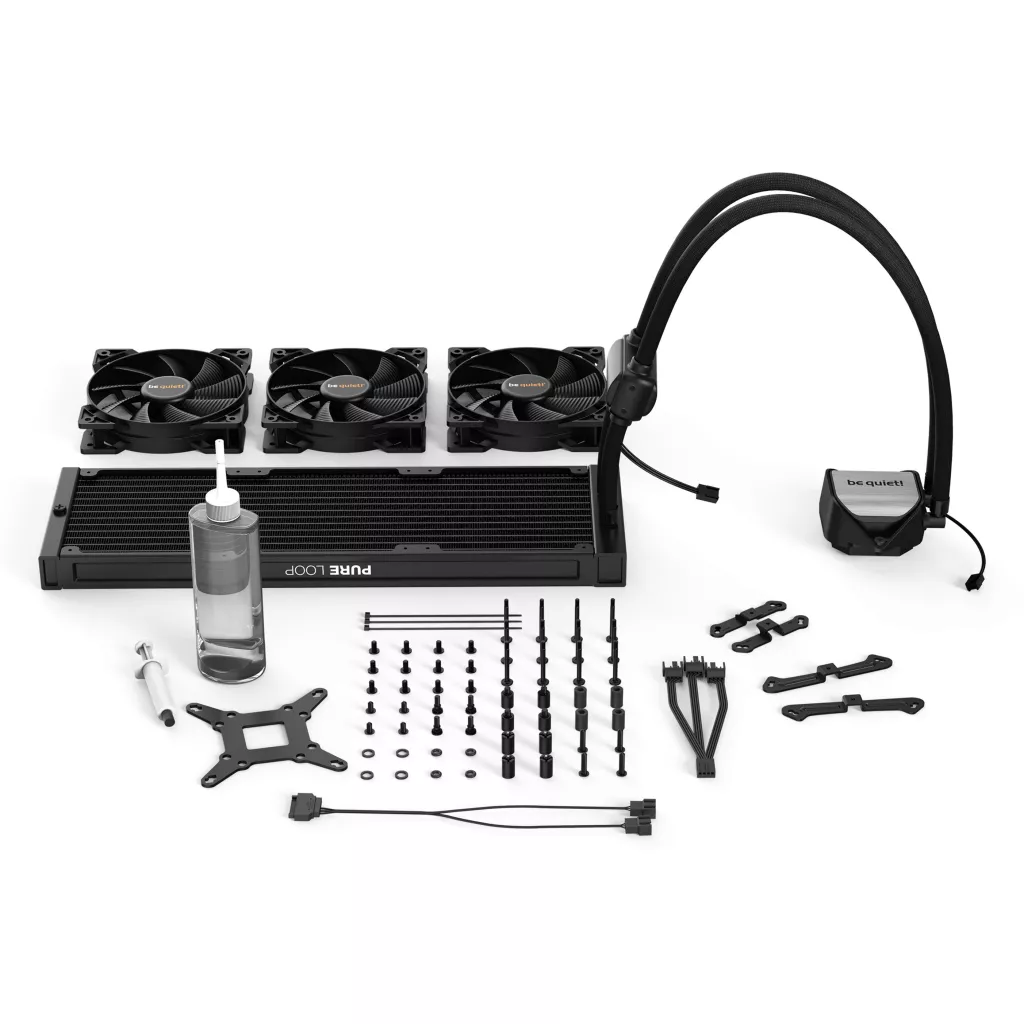 Pure Loop 360 мм — это новая бесшумная и эффективная готовая система водяного охлаждения be quiet! b> для ориентированных на конкурентную цену пользователей систем без использования разгона процессора. 2 120 мм ШИМ сочетает тихую работу и высокое давление воздушного потока Высокая эффективность охлаждения