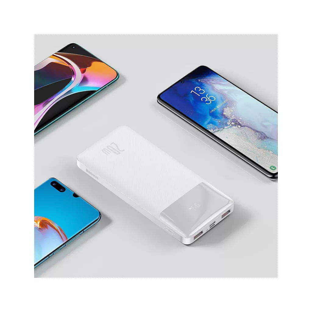 < Внешний источник питания поддерживает несколько протоколов быстрой зарядки. Он совместим с протоколами FCP, QC и AFC. Поэтому он идеально подходит для подзарядки смартфонов Huawei, Xiaomi или Samsung. К примеру, он также позволяет быстро зарядить iPhone 12 мощностью 20 Вт – для восстановления 50% энергии нужно всего около 30 минут! Так что ваши устройства могут быть готовы к использованию в кратчайшие сроки. А что касается самого павербанка? Чтобы полностью зарядить его энергией 18 Вт, требуется всего 6-7 часов. подключить несколько устройств одновременно. Устройство предлагает 2 выходных порта USB мощностью 18 Вт, 1 входной порт micro USB мощностью 18 Вт и входной/исходящий порт USB-C мощностью 18 Вт/20 Вт. Что это значит на практике? С помощью павербанка вы можете, например, одновременно заряжать планшет и 2 смартфона – больше не нужно ждать, пока зарядится первое устройство, прежде чем подключать следующее!Не беспокойтесь о безопасности Высококачественный полимерно-литиевый аккумулятор гарантирует не только быструю, но и безопасную зарядку. Baseus предлагает защиту от перенапряжения, перегрузки по току, перезарядки и короткого замыкания. Внешний источник питания также оснащен и укомплектован температурными датчиками (индикаторами) NTC, которые предотвращают перегрев. Продукт интеллектуально определяет подключенные устройства и регулирует ток зарядки в соответствии с ними, защищая их от повреждения. у вас никаких затруднений. Его корпус отличается приятной на ощупь текстурой, устойчивой к поту и отпечаткам пальцев – вы легко сможете содержать его в чистоте. Благодаря этому вы сможете с комфортом воспользоваться устройством и летом. Изделие оснащено и укомплектовано легко читаемым светодиодным экраном, на котором в режиме реального времени отображается текущий уровень заряда батареи.