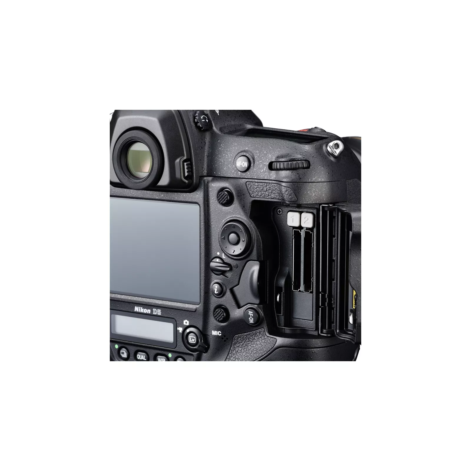 Кнопки имеют четко очерченные края и изгибы, благодаря чему улучшается общая эргономика фотокамеры, а процесс управления становится интуитивно понятнее. Новые двойные гнезда для карт памяти XQD пригодны при съемке фотокамерой D5 до 200 изображений в формате NEF (RAW) в одной высокоскоростной серии, гарантируя быструю очистку буфера для следующей серии. Новый порт USB 3.0 позволяет с высокой скоростью передавать большое количество данных, а беспроводное подключение и подключение Ethernet теперь работают в 2 раза быстрее.