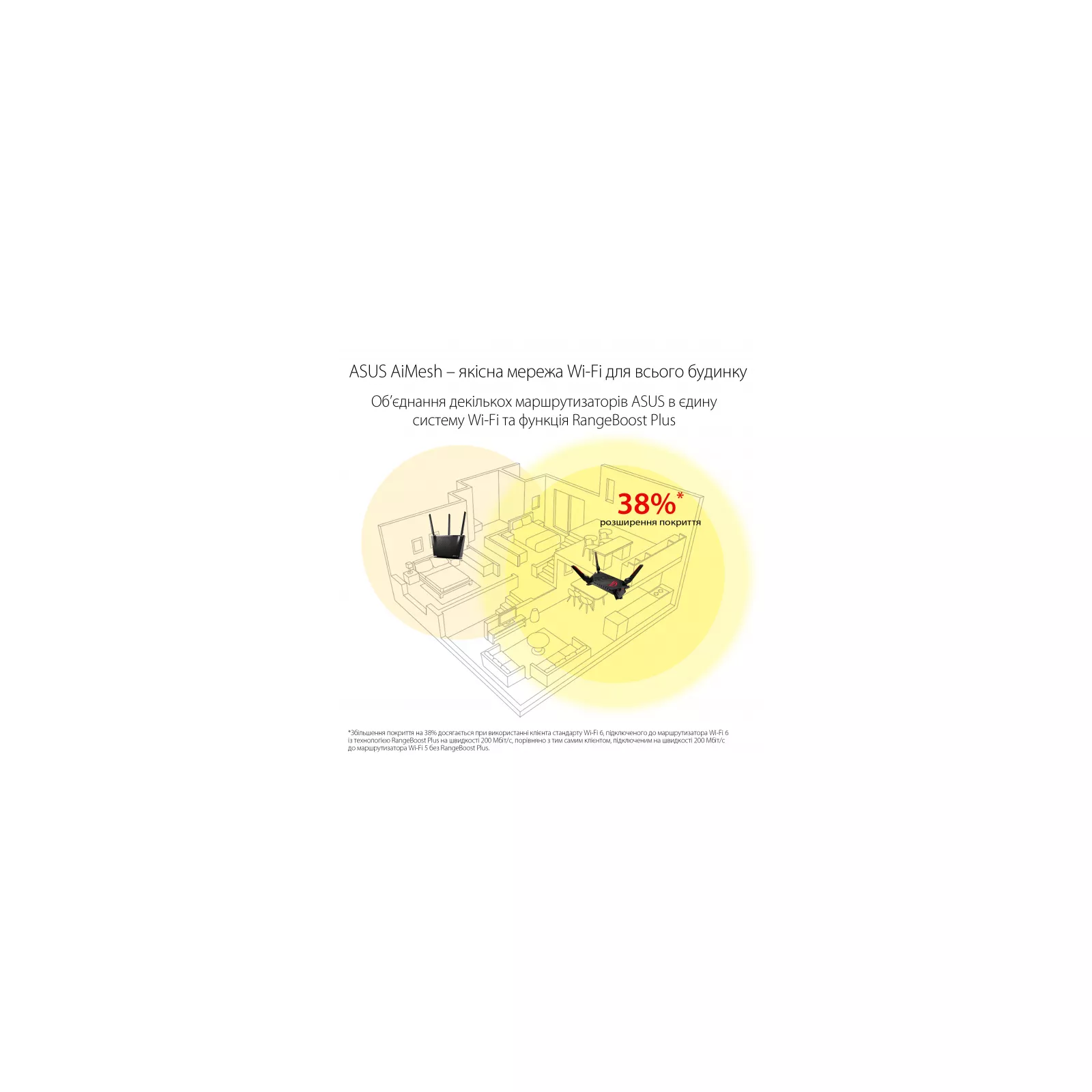 Благодаря передовым компонентам, включая флагманский чипсет Broadcom и эксклюзивным технологиям ASUS, таким как RangeBoost Plus, зона покрытия сети Wi-Fi увеличена на величину до 38% по сравнению с маршрутизаторами стандарта Wi-Fi 5, у которых нет технологии RangeBoost Plus.