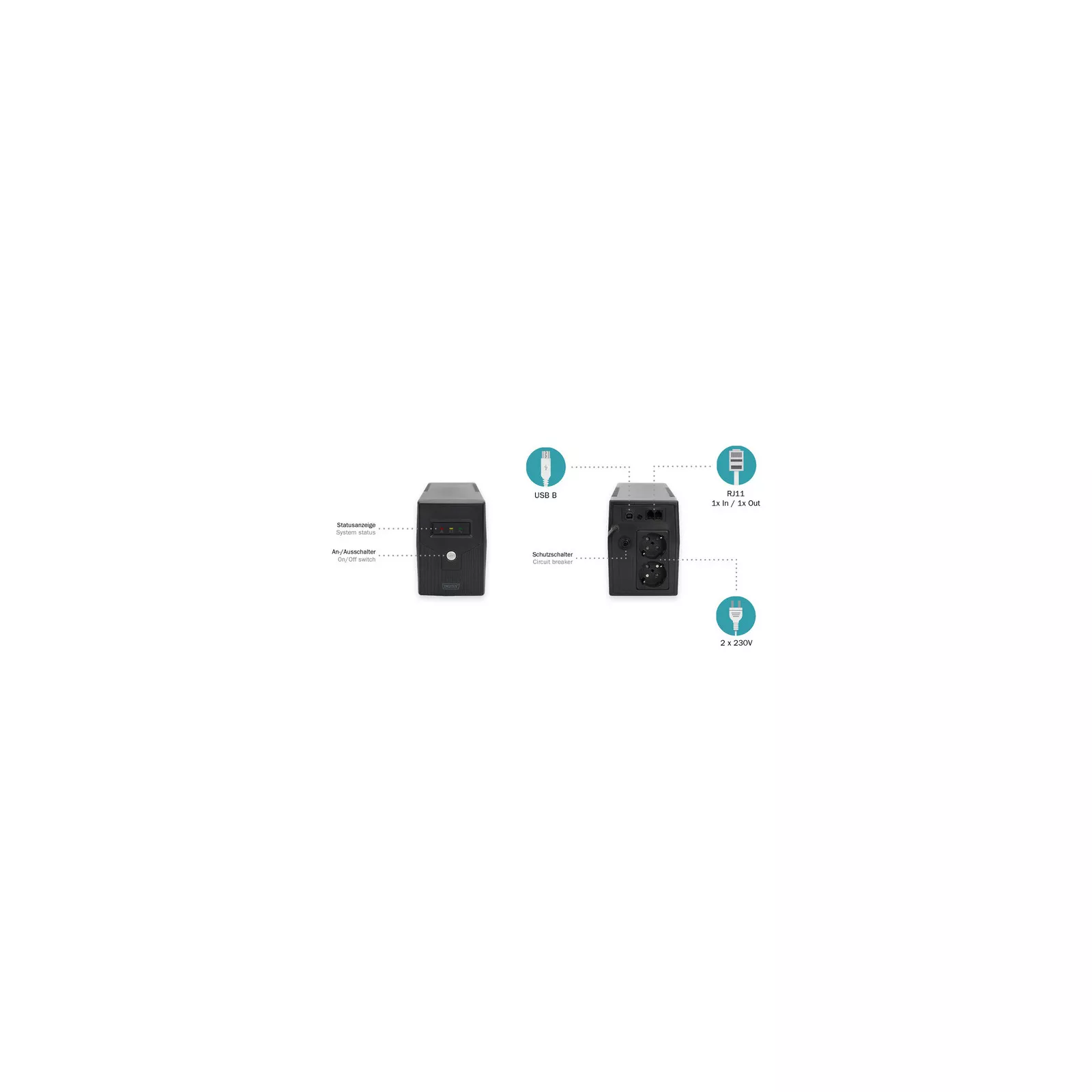 Линейно-интерактивные источники бесперебойного питания DIGITUS® обладают множеством преимуществ: защита от перегрузки, разрядки и перезарядки, функция «холодного запуска», энергосбережение, система звуковых сигналов тревоги и т.д.