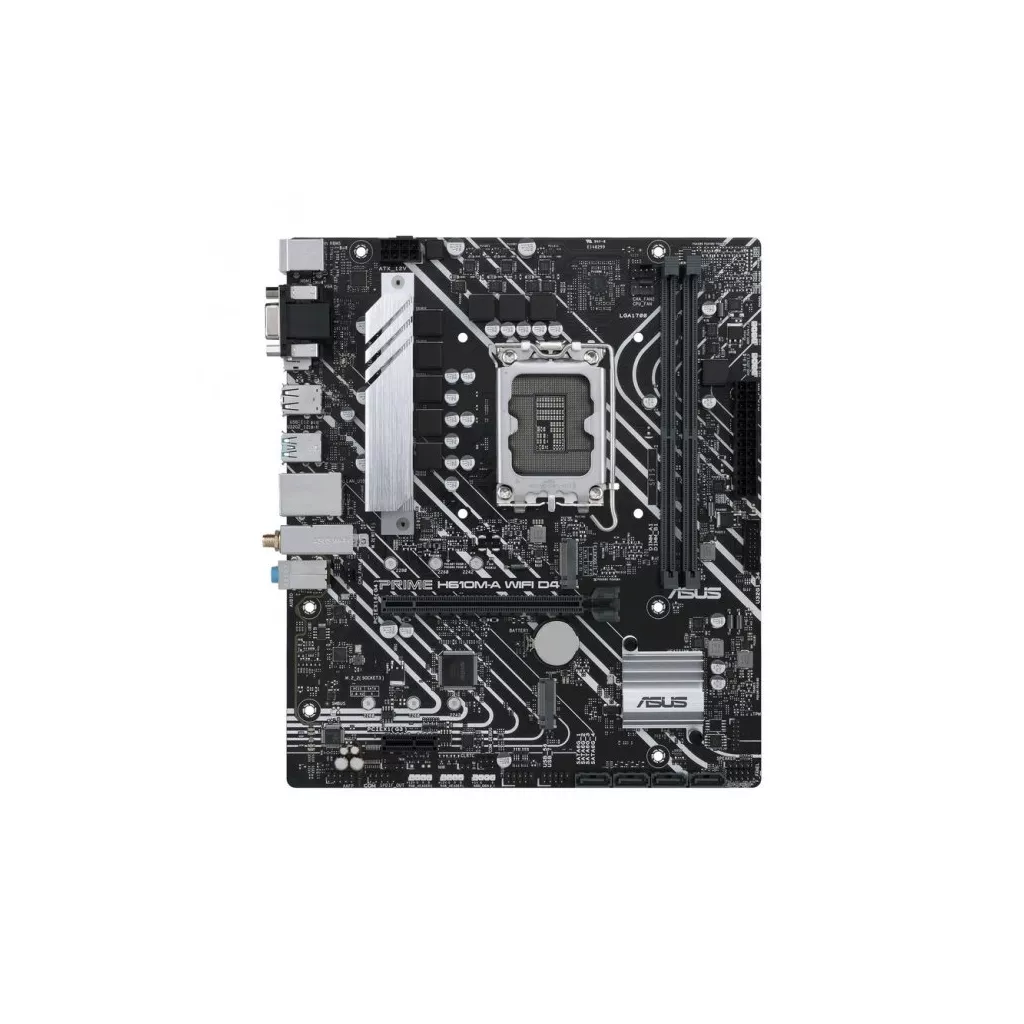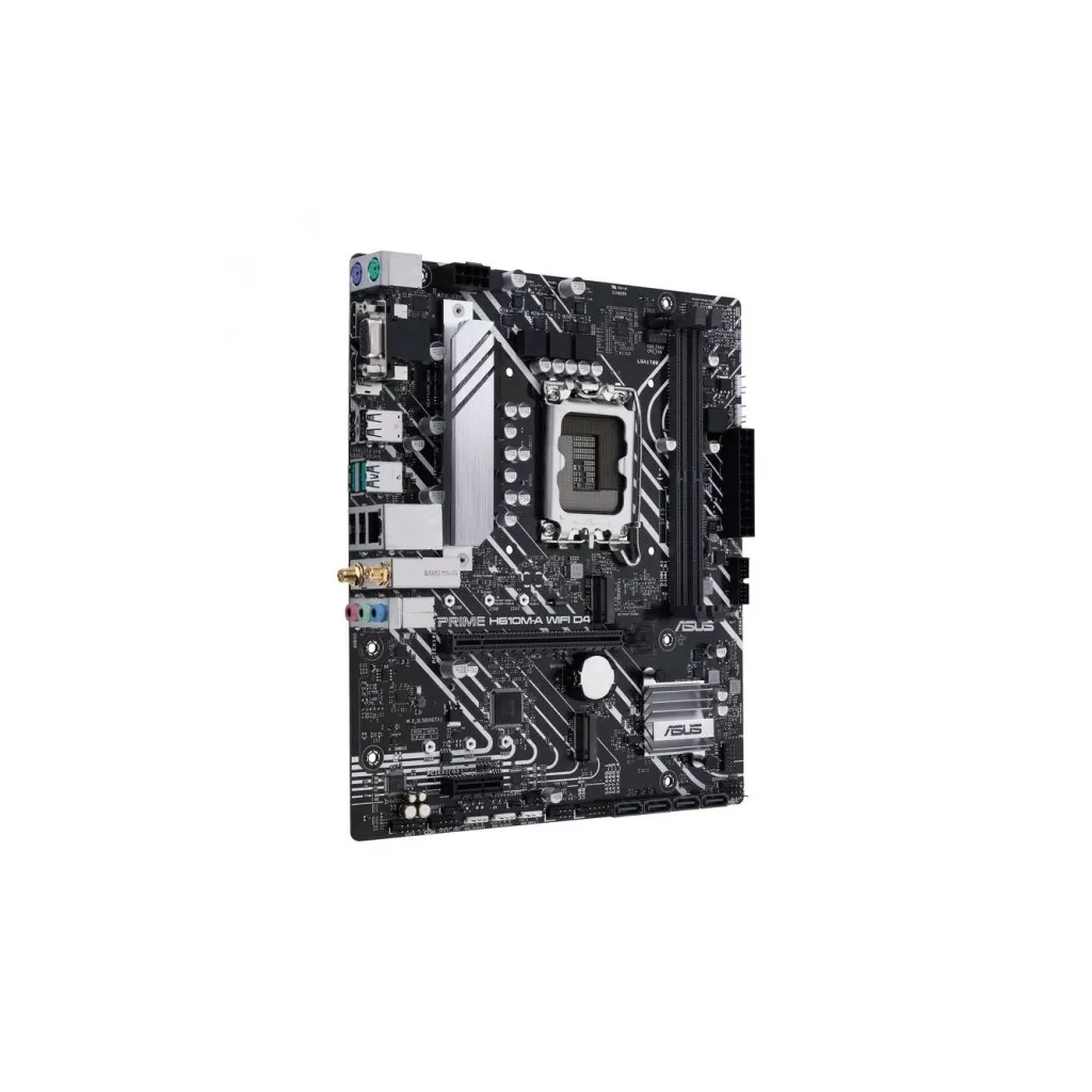 Asus PRIME H610M-A WIFI D4 - материнская плата с чипсетом Intel H610. оснащена и укомплектована процессорным разъемом LGA 1700, выполнена в форм-факторе Micro ATX, а потому оптимизирована для компактных систем.