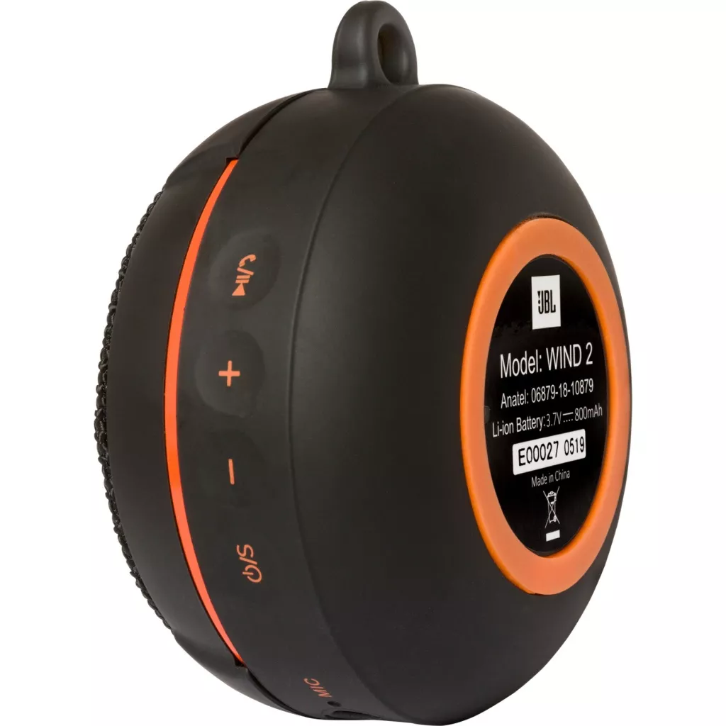Портативная акустическая система с надежной защитой от воды (ИРХ7), беспроводным bluetooth-подключением, специальным креплением на трубчатый руль, монохромным LED-экраном, встроенным FM-тюнером и картридером. Позиционируется как доступный продукт средней ценовой категории 2020 года, предназначенный для активных пользователей, проводящих много времени на открытом воздухе и велосипедистов, желающих слушать музыку в дорожных условиях. Для удобства повседневного использования выполнена в небольшом пластиковом корпусе обтекаемой формы (9,8х8,7х4,7 см) и оснащена и укомплектована креплением для комплектного металлического карабина, что позволяет быстро зафиксировать ее на рюкзаке, сумке, спортивном тренажере и т.п. имеет скромный вес (370 г) не станет обузой на прогулке или пикнике. Портативная акустическая система JBL Wind 2 – продолжение популярной серии JBL Wind. В отличие от устройства предыдущего поколения, эта модель поддерживает более совершенный беспроводной интерфейс Bluetooth 4.2, который отличается повышенной энергоэффективностью и полностью совместим с предыдущими версиями Bluetooth от 2.1 и выше. Также стоит отметить усиленный корпус с карабином большего размера, повышенную громкость и емкую батарею, обеспечивающую до 10 часов автономного звучания (зависит от громкости). Есть аналоговый порт AUX IN с разъемом 3-pin mini-Jack 3.5 mm. Басовый звук JBL порадует пользователя своей громкостью и детализацией.