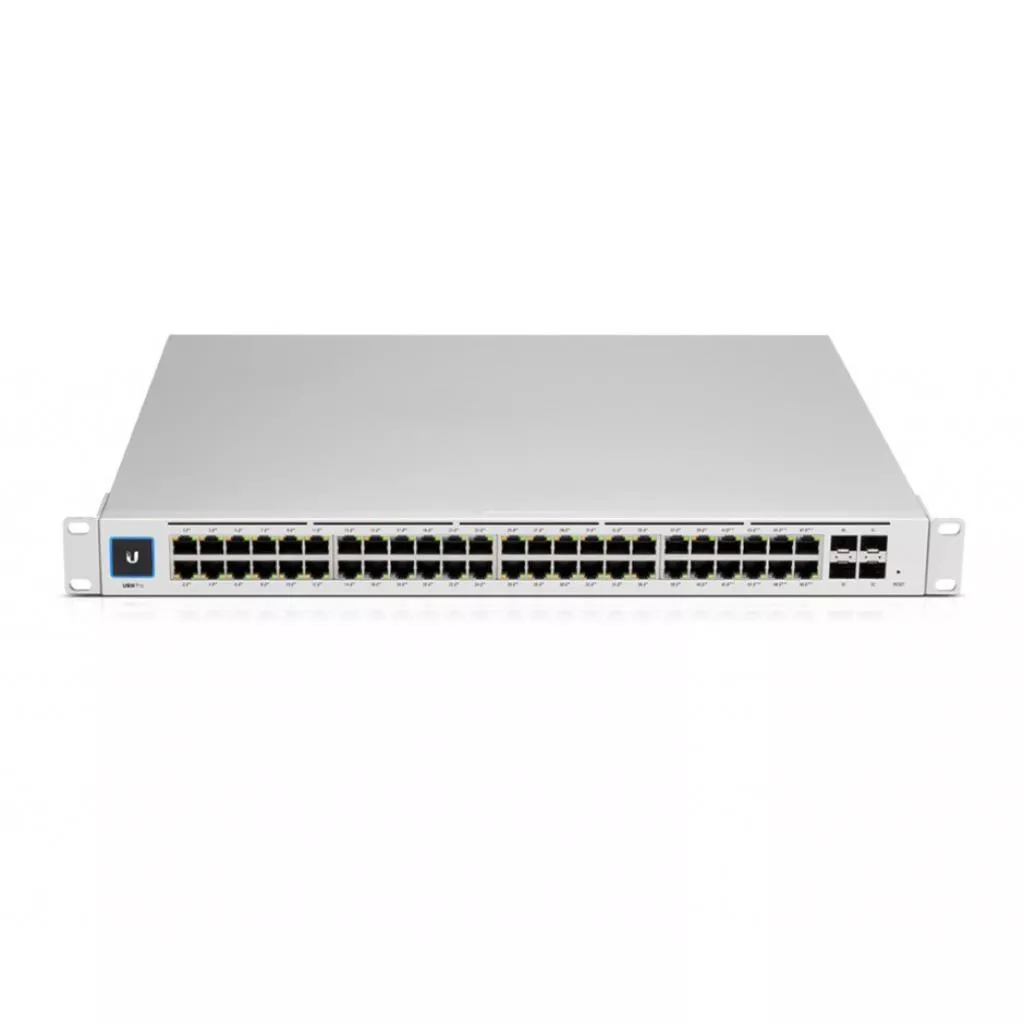 UniFi Switch 48 PoE - представляет собой настраиваемый коммутатор уровня 2. Он обеспечивает гигабитное PoE-соединение с вашими устройствами благодаря наличию 48 портов RJ45 Ethernet и оптоволоконный гигабитный канал восходящей связи для корпоративной сети, через SFP порты.